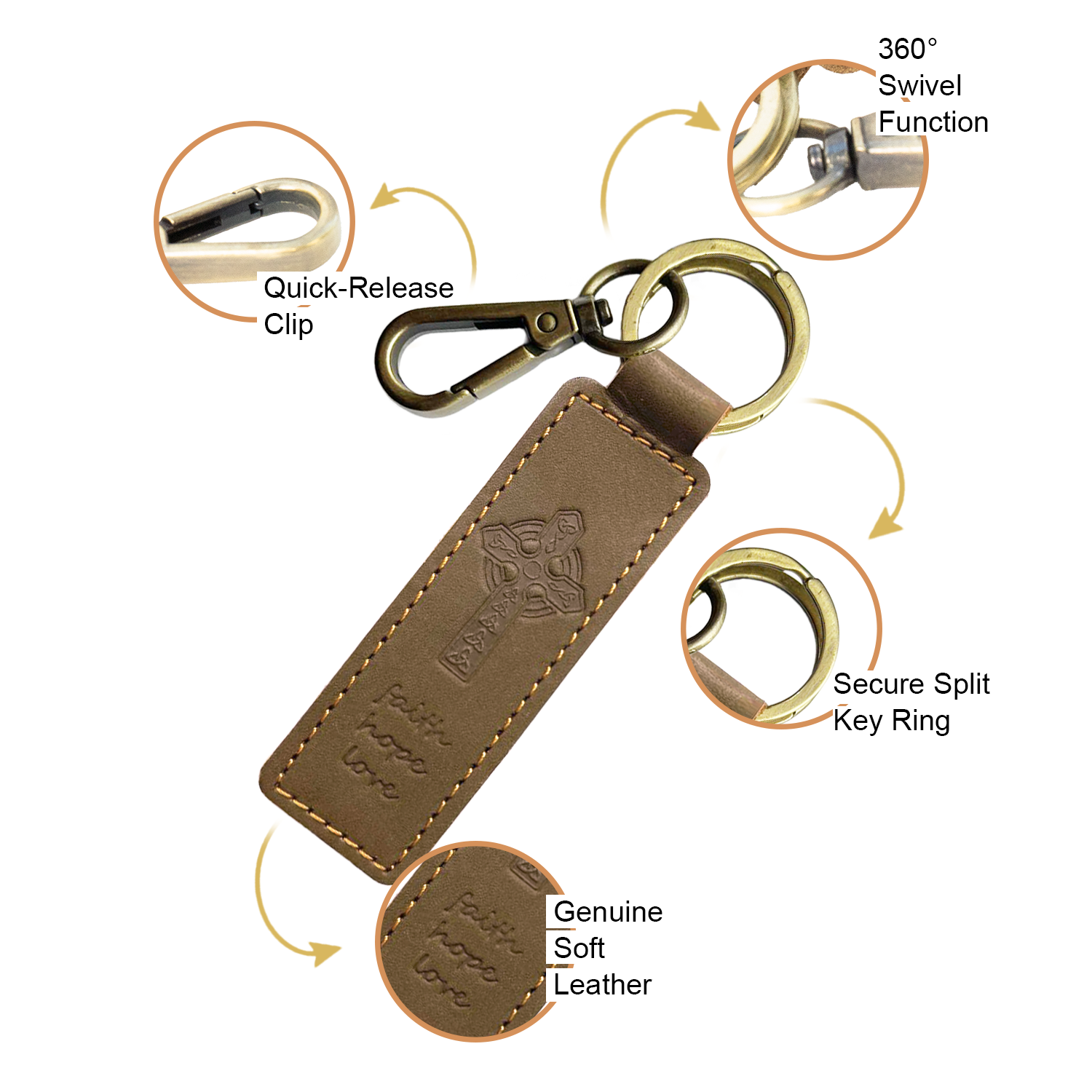 - EMBOSSED CELTIC CROSS - HERITAGE IN EVERY DETAIL Featuring an intricately embossed Celtic Cross design, this Sovereign-Gear leather keyring celebrates tradition and craftsmanship. The meaningful symbol stands out against the rich brown leather, offering a distinctive touch for those drawn to Celtic culture, faith, or heritage. A timeless accessory that blends spiritual significance with everyday practicality in a compact, elegant form.
