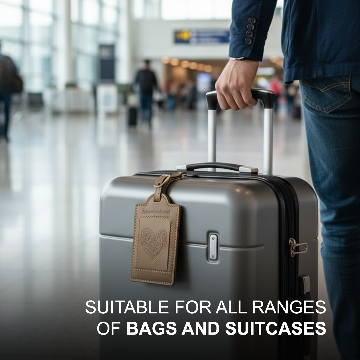 - EMBOSSED HEART DESIGN - A CHARMING TRAVEL COMPANION - Featuring a beautifully embossed heart motif, this Sovereign-Gear brown leather luggage tag adds a touch of romance to your travel essentials. The intricate design blends elegance with meaning, making it a perfect gift for loved ones or a stylish personal keepsake. Handcrafted for durability and sentimental value, it's a standout piece that combines heartfelt detail with everyday practicality.