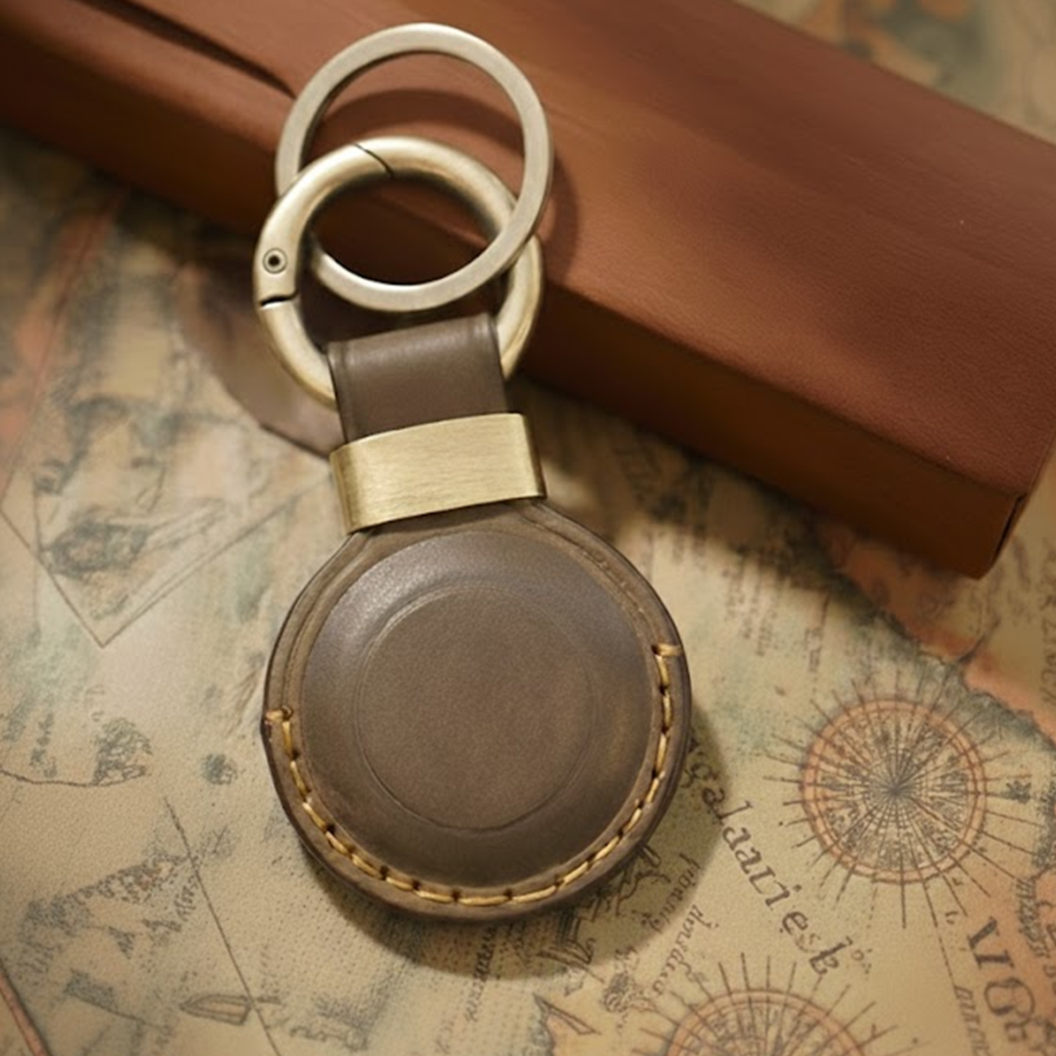 Equipped with an antique-gold spring ring clip and a metal loop, the holder attaches easily to keys, bags, pet collars, or luggage. The secure fit ensures your AirTag stays protected and accessible, making it perfect for travel, commuting, or everyday organization. Precision-cut for a snug fit, the holder allows full signal and sound transmission, ensuring your AirTag performs flawlessly. Easy to install and built to last, this accessory blends classic style with practical protection.