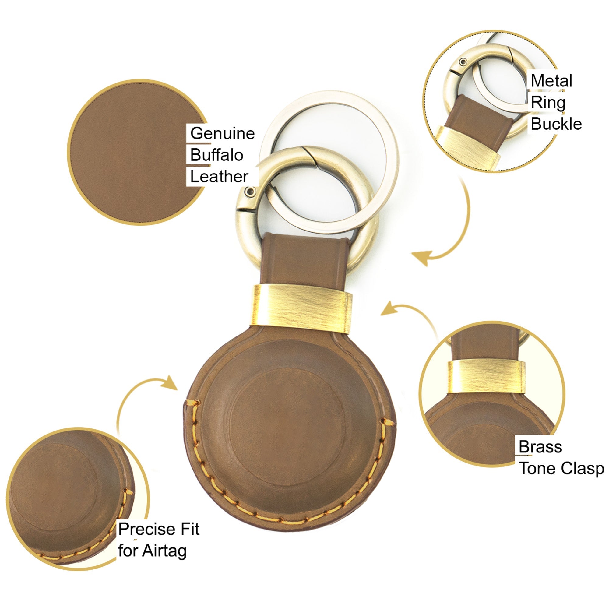 - Secure Anti-Loss Attachment The Sovereign-Gear leather airtag holder features an antique gold spring ring clip and a metal loop for easy attachment. Use it on your pet's collar, keys, backpack or suitcase. This versatile AirTag holder ensures your AirTag stays safe and accessible - ideal for travel, commuting or pet tracking.
