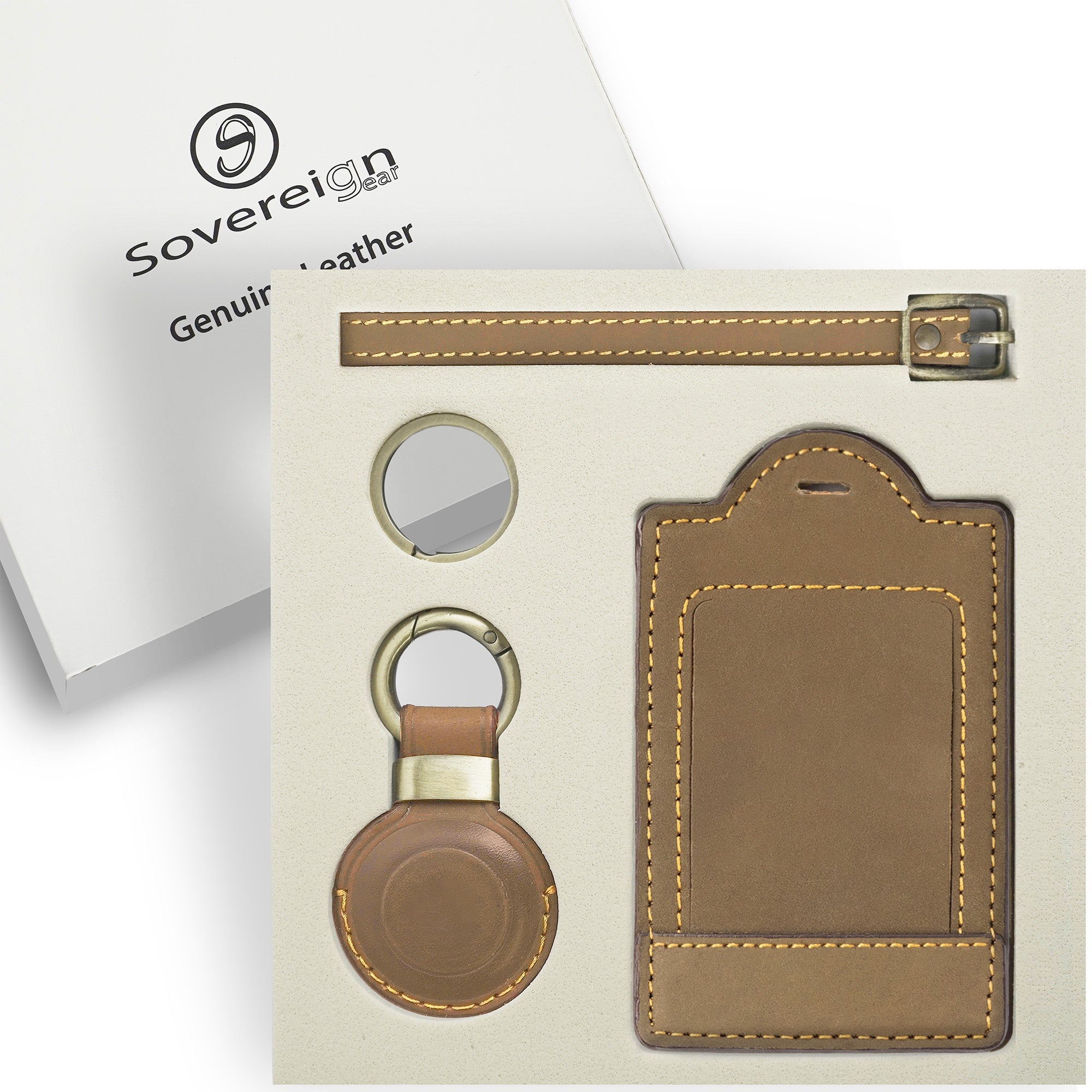- PREMIUM HANDCRAFTED LEATHER - Crafted from real leather with expert stitching, this Sovereign-Gear luggage tag holder set is designed for durability and timeless style. The rich brown tone and quality craftsmanship make it a standout among suitcase name tag luggage accessories, perfect for frequent travelers who demand both form and function.