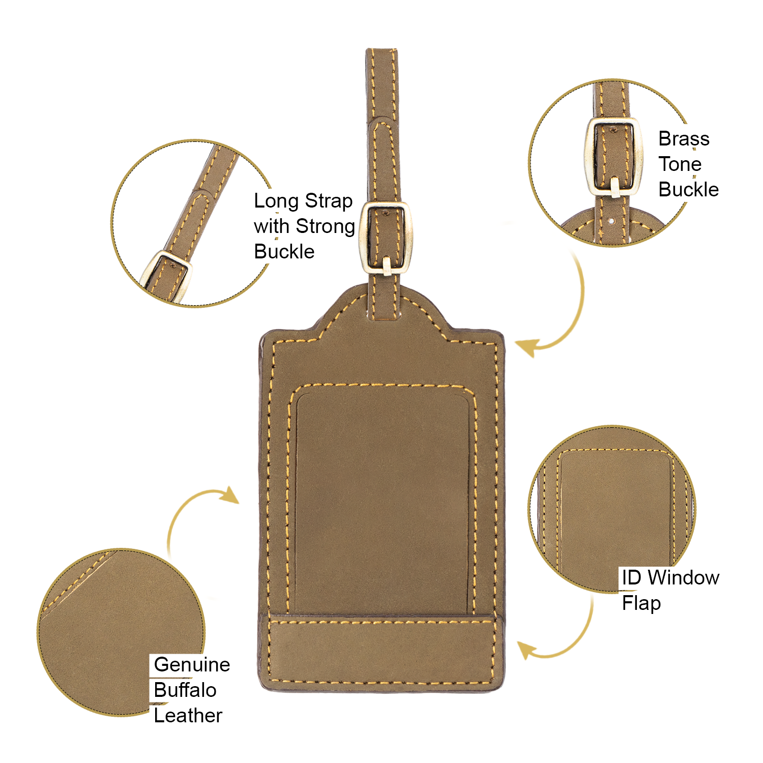 - FLEXIBLE LONG STRAP & STRONG BUCKLE - Each luggage tag features an extended leather strap with a sturdy buckle, allowing you to fasten it securely to handles, zippers or unconventional luggage spots. Whether you're tagging a backpack or hard-shell case, this suitcase tag for luggage adapts for reliable, stylish travel use.