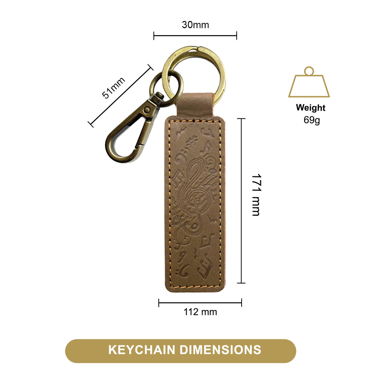 - MUSICAL DESIGN - EMBOSSED TREBLE CLEF & NOTES This handcrafted brown leather keyring features an intricately embossed treble clef and musical notes design, offering a stylish nod to music lovers. The detailed embossing adds a unique, artistic flair to this everyday essential. A perfect blend of creativity and craftsmanship, this leather key fob by Sovereign-Gear brings personality and elegance to your key organization.