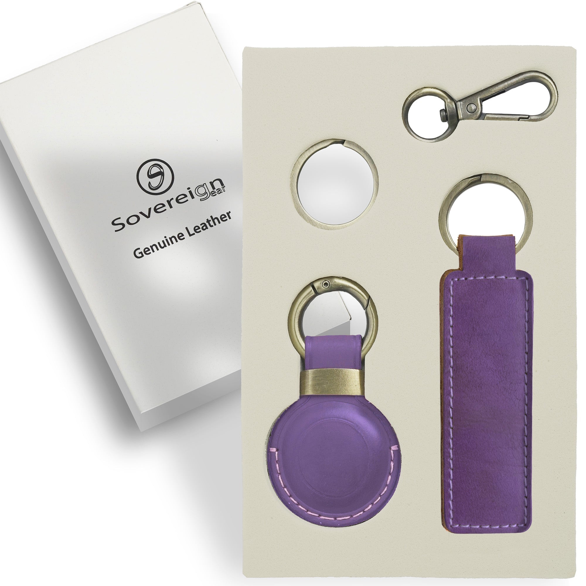 - LUXURY HANDCRAFTED REAL LEATHER Sovereign-Gear's premium set includes a purple leather keyring and matching leather airtag holder, both handcrafted from genuine full-grain leather. The smooth finish, vibrant tone and rich texture offer a stylish yet functional upgrade to your everyday essentials. Designed to last, this elegant set combines durability with timeless appeal.