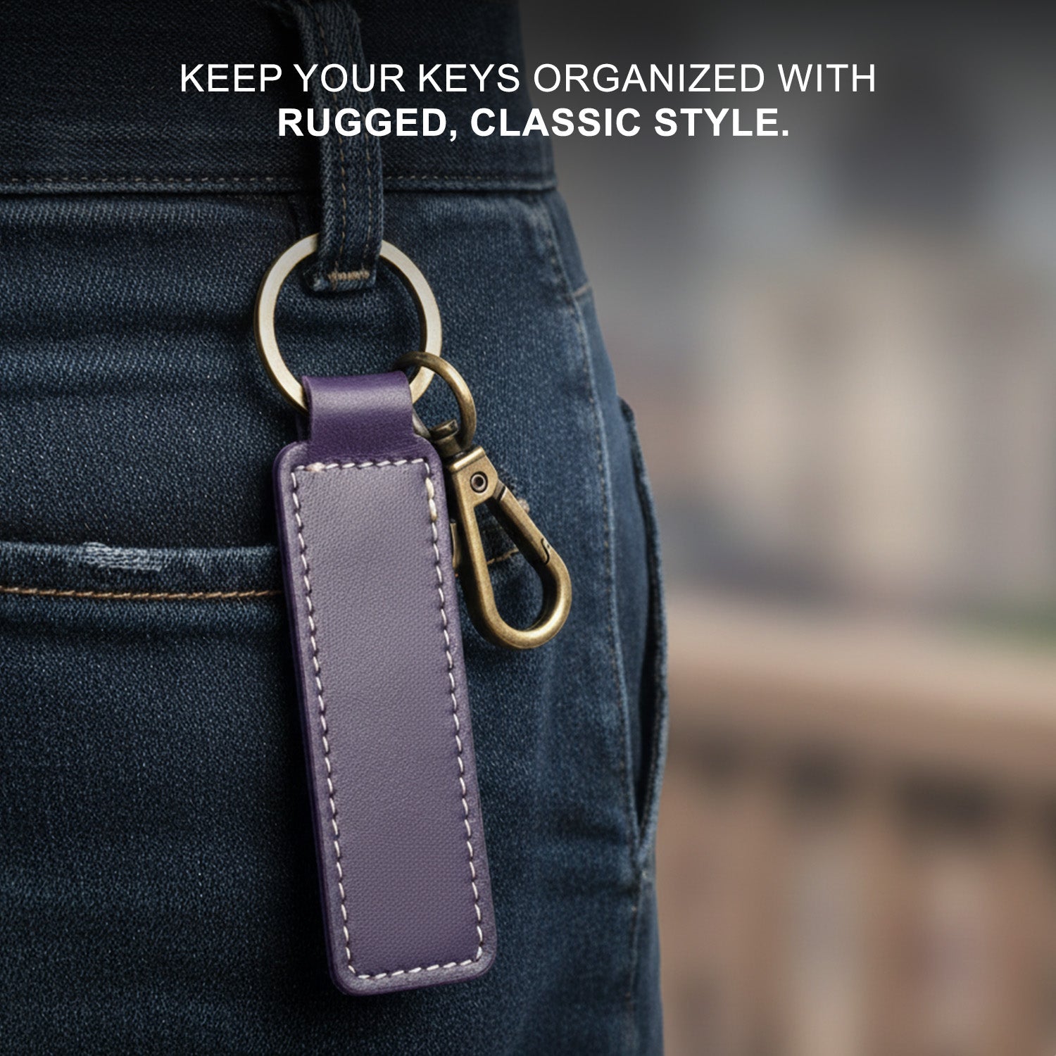 - CLEAN & CLASSIC - PLAIN PURPLE BUFFALO LEATHER Made from thick, high-quality buffalo leather, this Sovereign-Gear keyring features a smooth, unembellished finish in a rich purple hue. The minimalist design highlights the natural texture and strength of the leather, offering timeless elegance and rugged durability. A perfect choice for those who appreciate understated style with a premium, handcrafted feel.