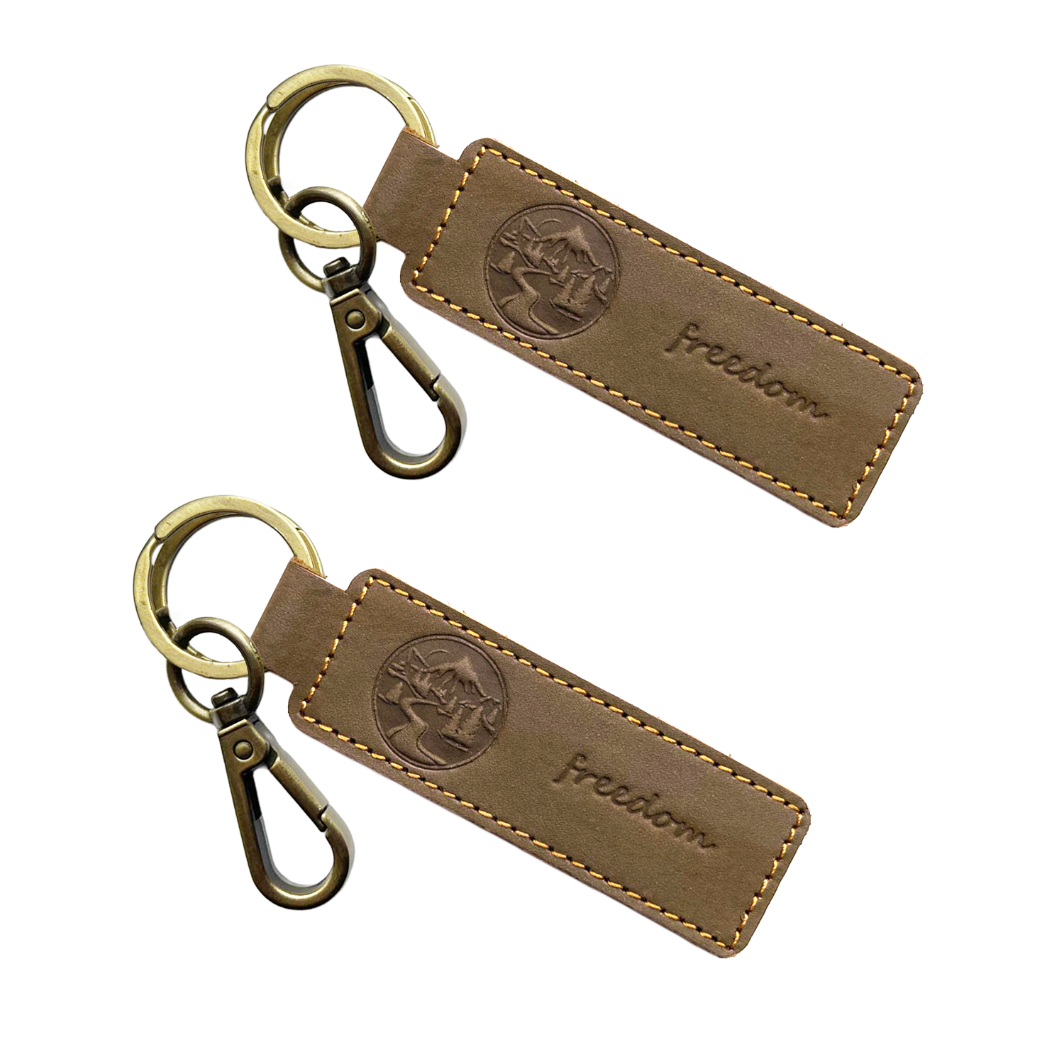 This premium brown leather keyring set features a rugged embossed mountain design, capturing the spirit of adventure and the call of the wild. Crafted from genuine leather, each keyring offers a soft yet durable feel that develops a unique patina over time. The mountain motif adds depth and character, making this set ideal for outdoor enthusiasts, hikers, and travelers who appreciate meaningful craftsmanship. The warm brown leather and vintage finish give each piece a timeless, handcrafted look.