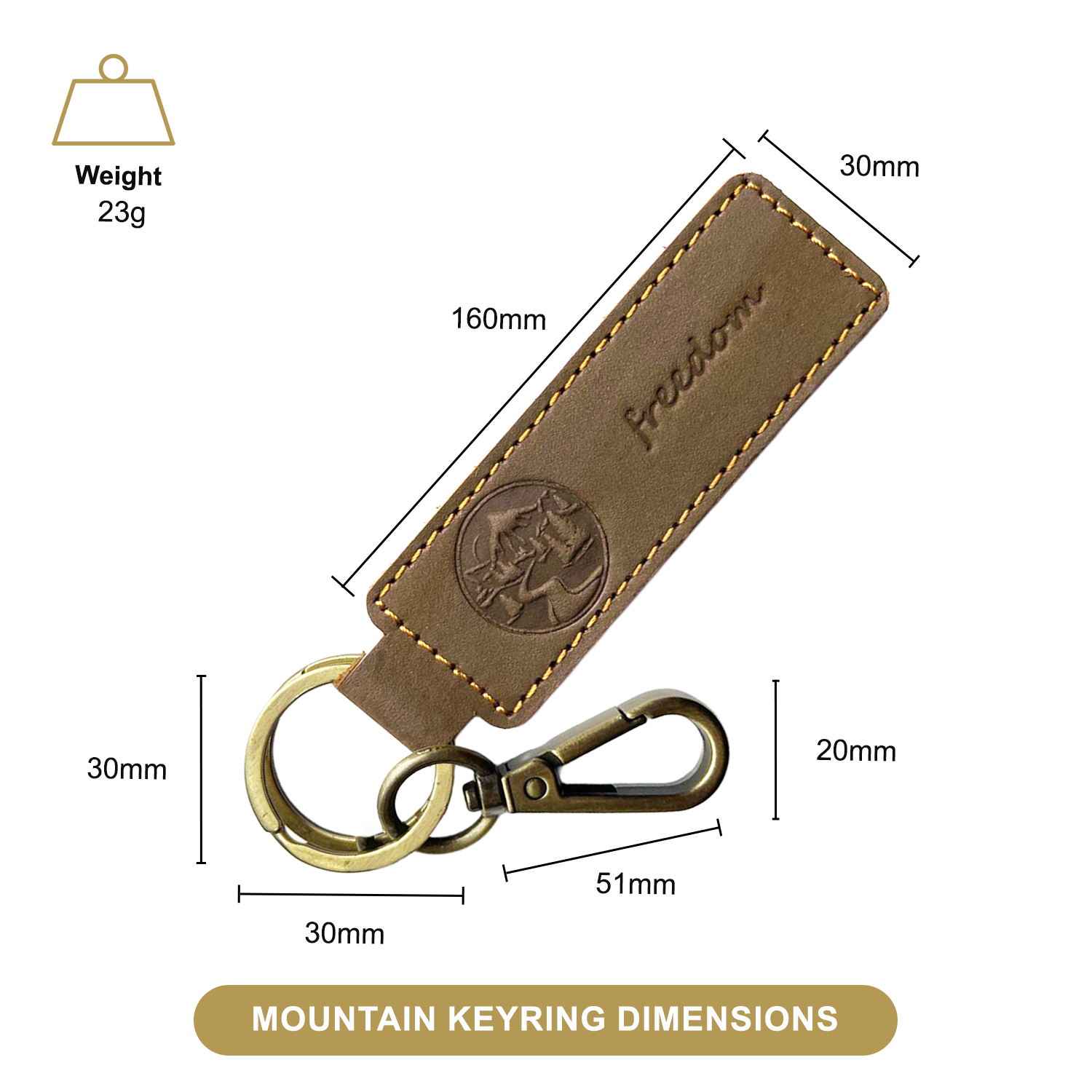 - EMBOSSED MOUNTAIN DESIGN - RUGGED BEAUTY IN EVERY DETAIL Featuring a striking mountain design embossed into rich brown leather, this Sovereign-Gear keyring celebrates the spirit of adventure. Made from genuine leather, it offers a soft feel that develops a unique patina over time. A meaningful keepsake for outdoor lovers and explorers who value durability and timeless style.