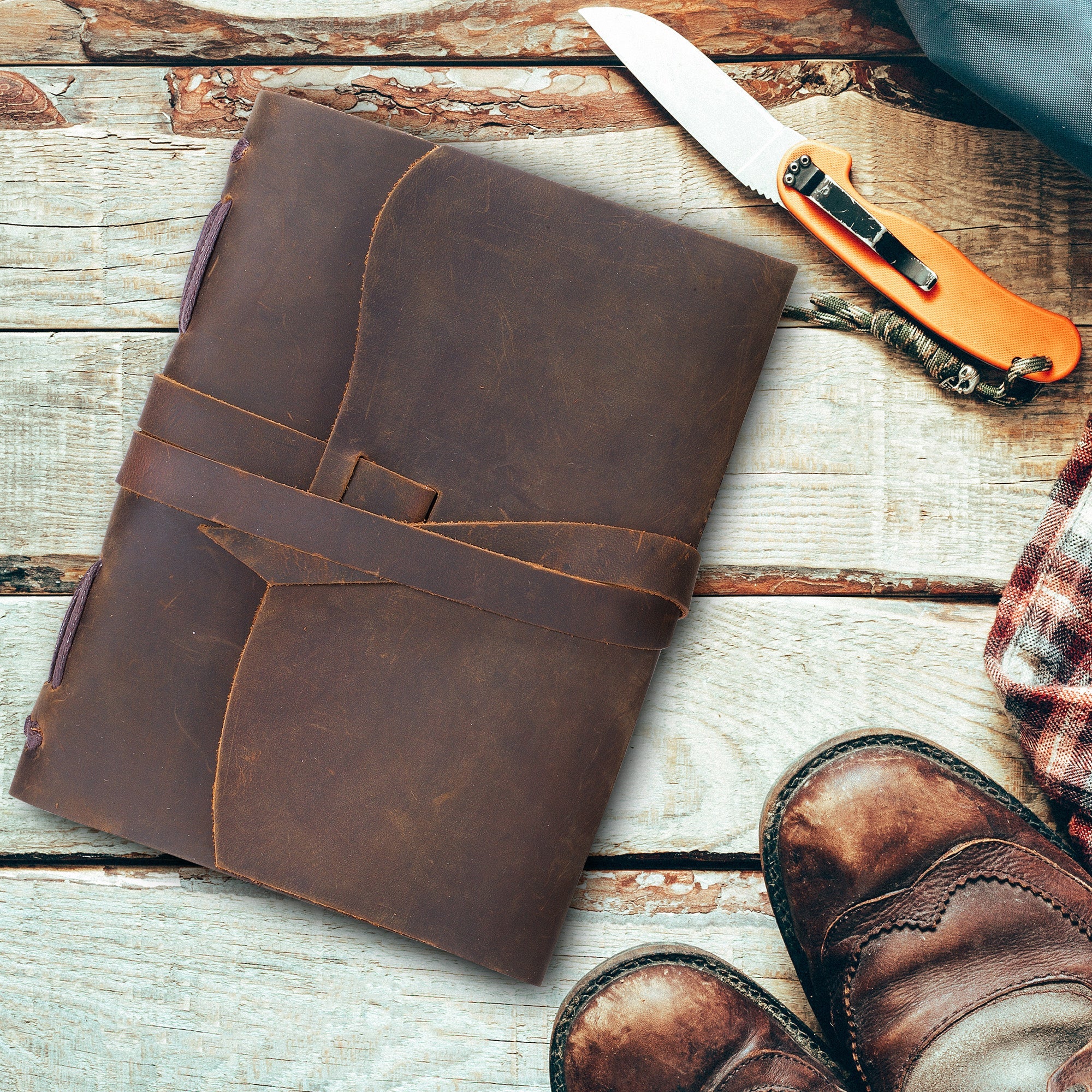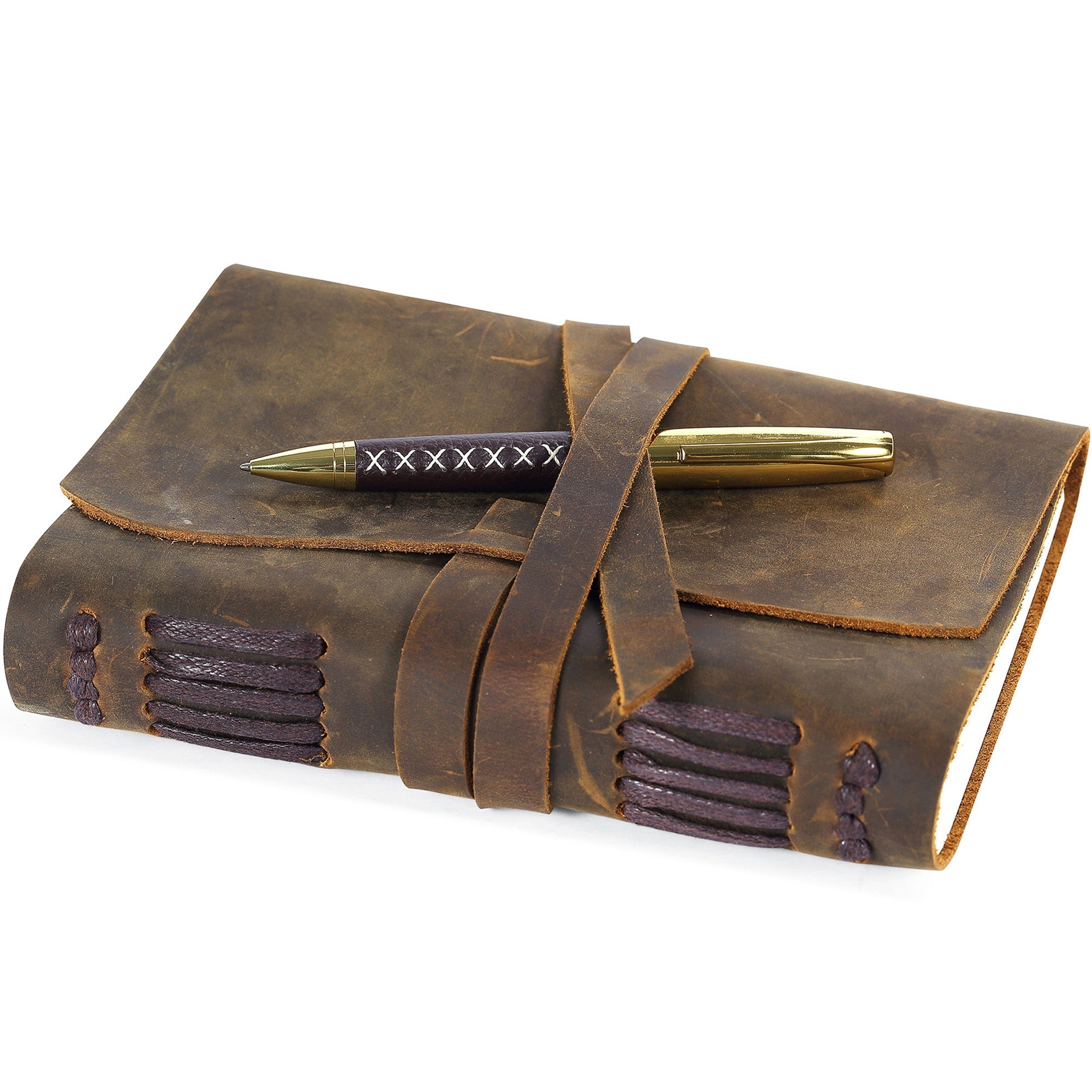 - UNIQUE HAND-MADE LEATHER JOURNAL - start writing in this lovely best selling rustic leather-bound journal. Includes a stylish pen, pen holder loop, jute bookmark and spine stitching. Secure leather strap wraps around the journal