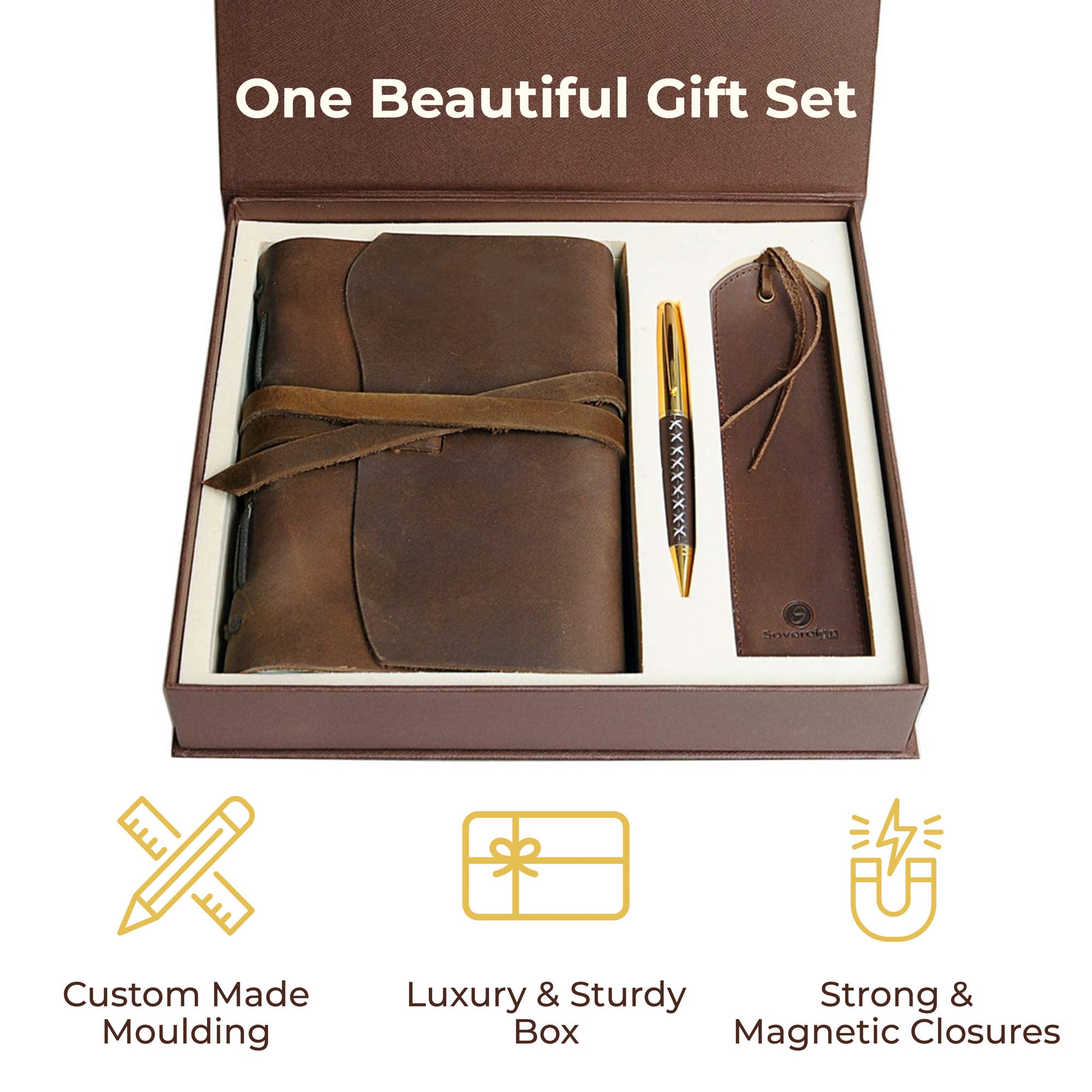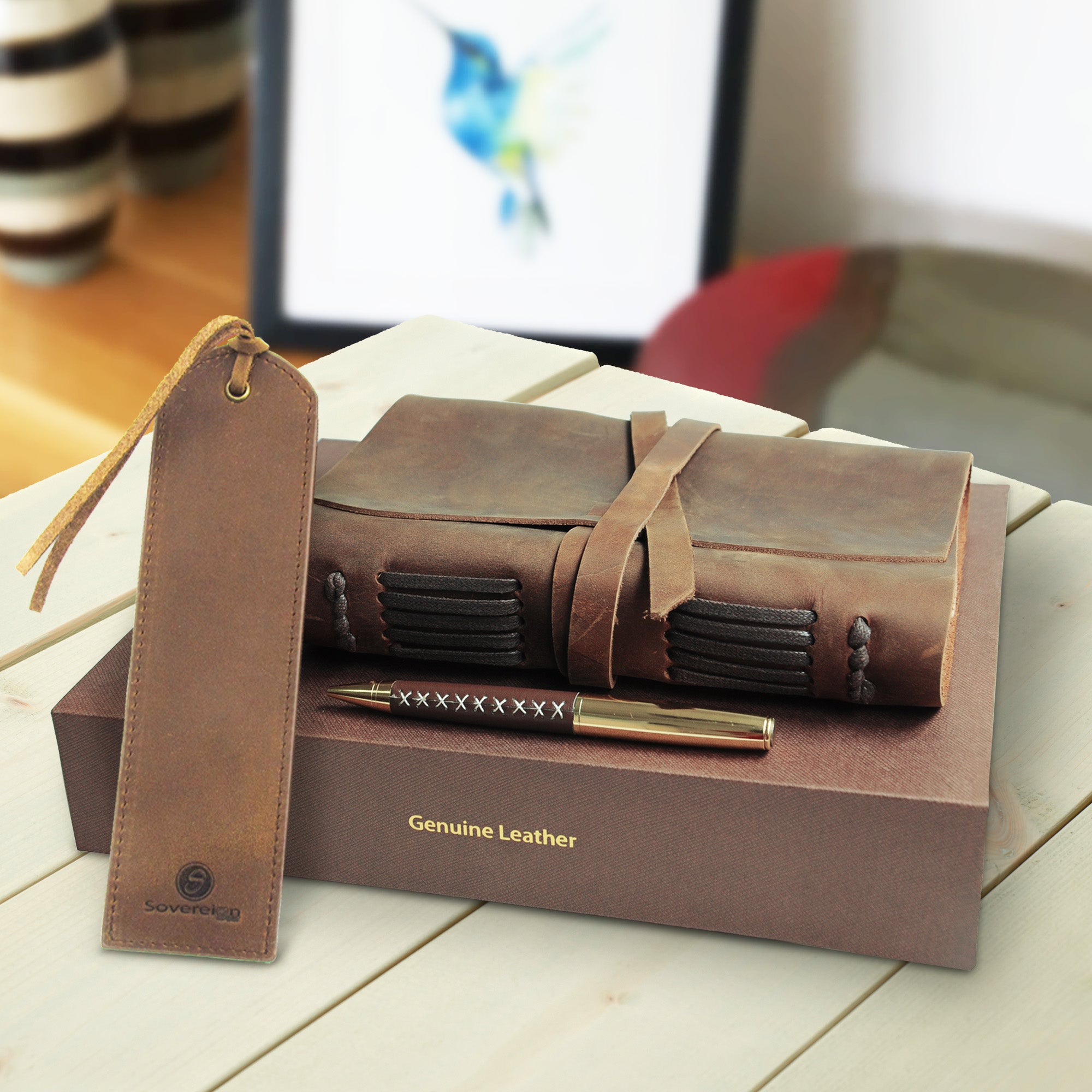 - UNIQUE GIFT SET - with handmade leather journal, leather bookmark, hidden pen holder and stylish pen, all in this finely crafted presentation box making it the perfect present