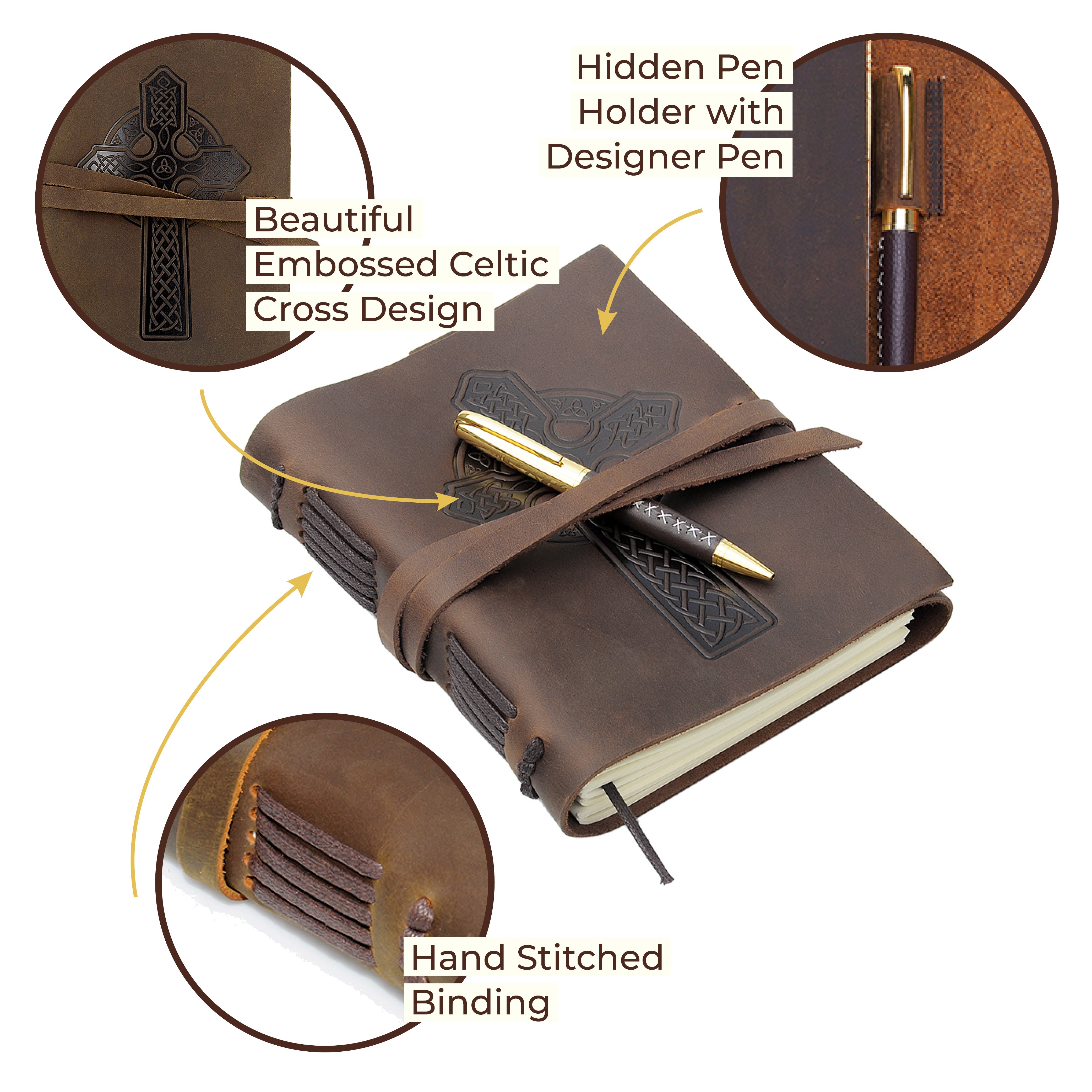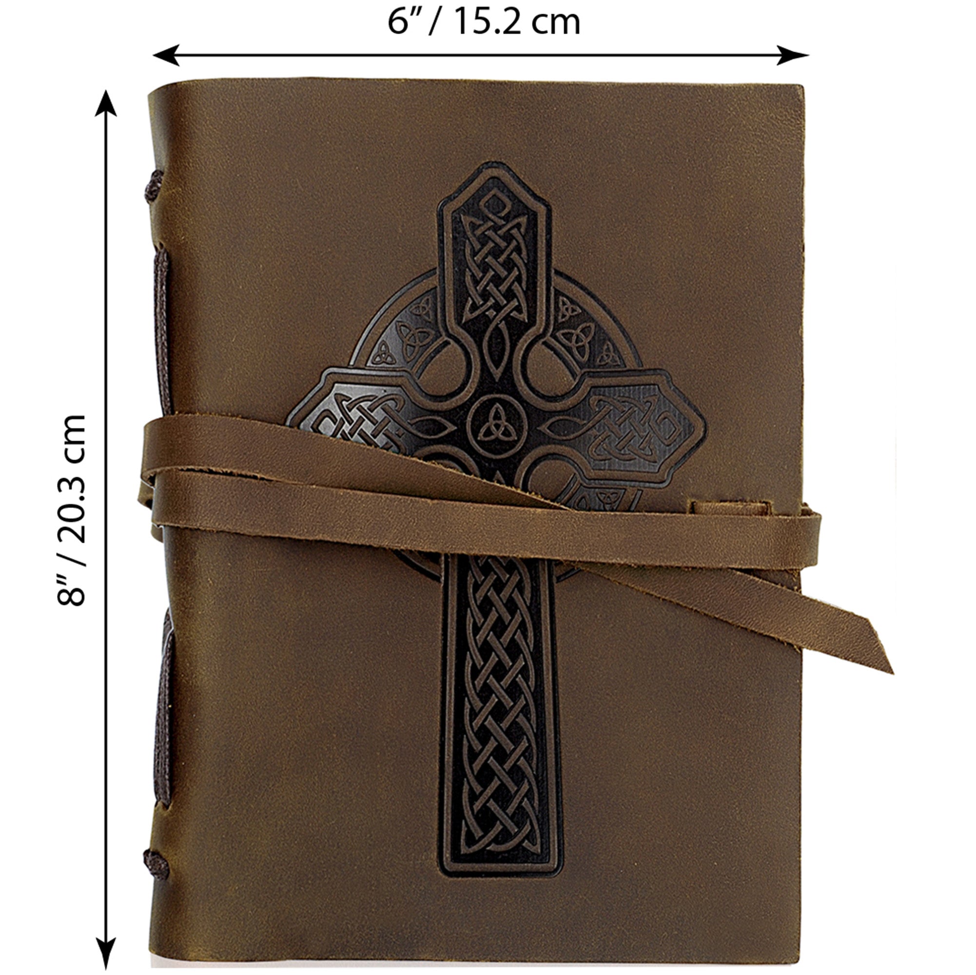 This large genuine leather journal set with a unique Celtic Cross design makes a wonderful gift for someone special or a lovely notebook or travel companion for you to keep and treasure. Each hand crafted journal is truly unique as no two are exactly the same.