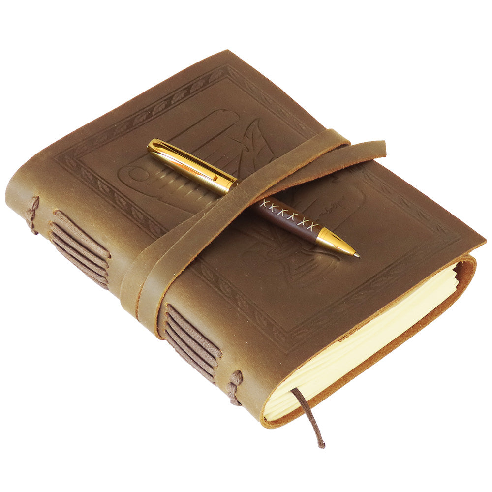 Embossed Feather & Ink Pot Leather Journal + Pen A5 21x15cm (8x6)