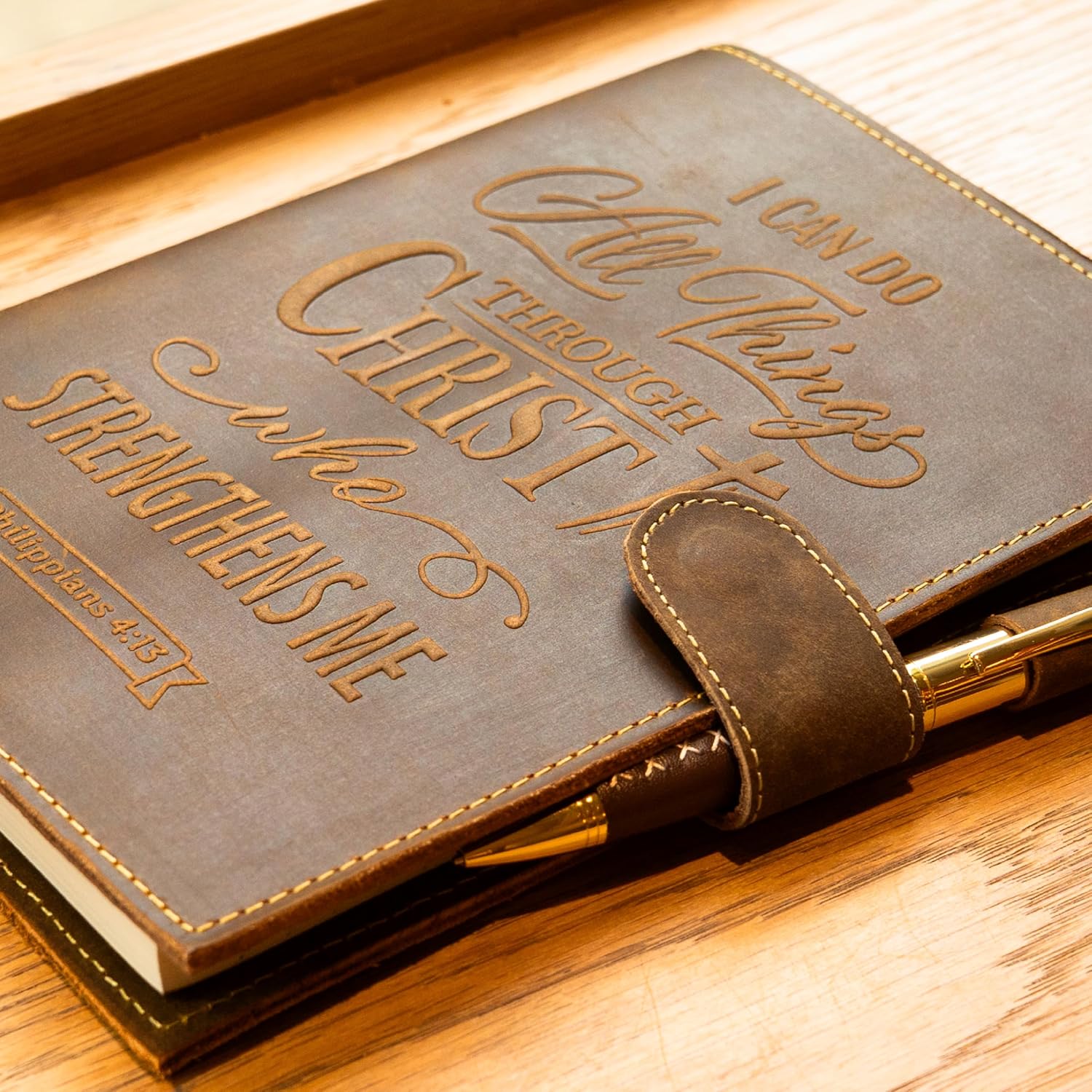 • EMPOWERING DAILY INSPIRATION: Let your words flow with strength and purpose. This leather journal is embossed with the uplifting quote 'I Can Do All Things', a daily reminder of faith and perseverance rooted in Philippians 4:13