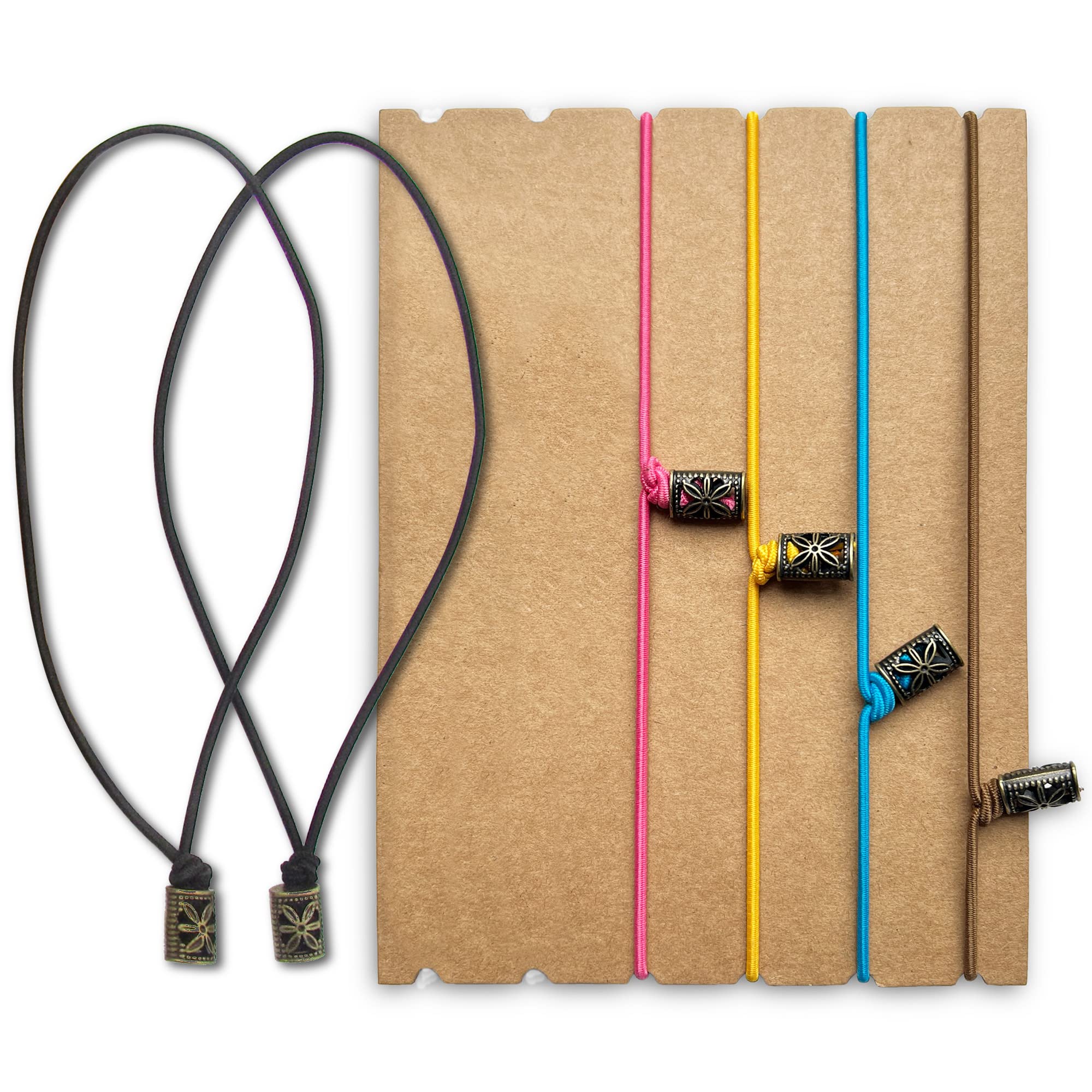 - Each pack contains 2 black, 1 blue, 1 brown, 1 pink and 1 yellow bands giving you a variety of options for your crafting or journalling activities. They're not simply rubber bands but thick, strong and stretchy elastic cord of woven fabric so they'll last for longer