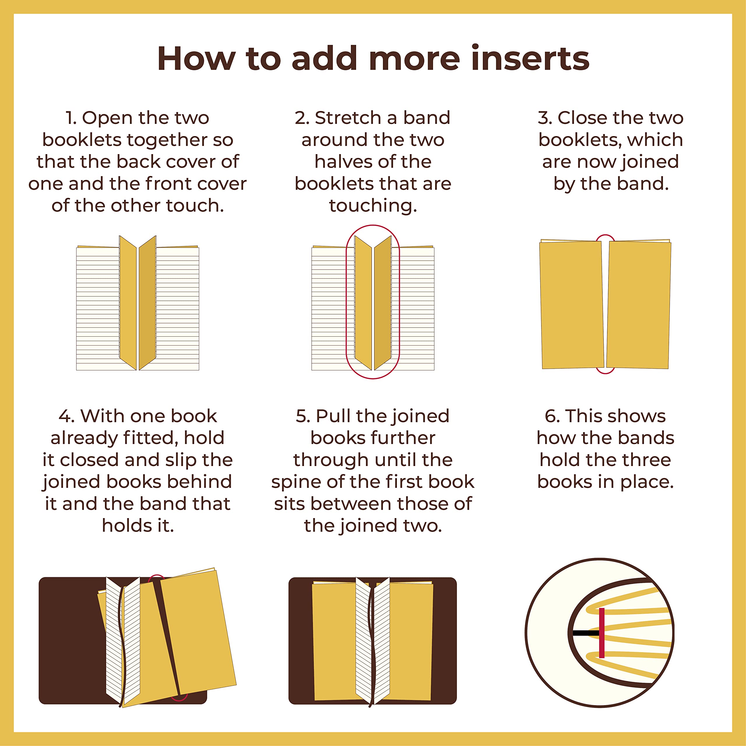 - Braided elastic band straps for travel journals are excellent travel accessories. Allows for further customizing of your standard traveller's notebook so you can add more paper inserts and other notebook refills, PVC zip pockets or brown card holders
