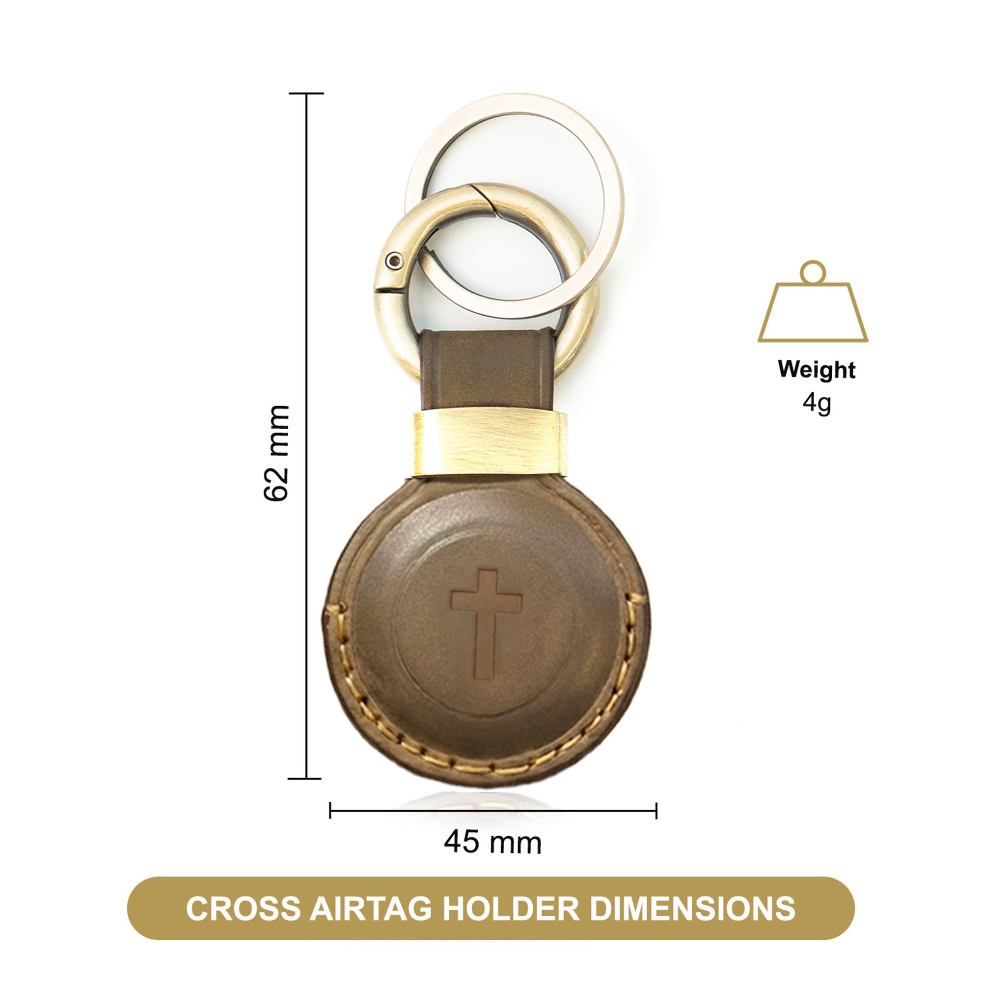 - EMBOSSED CROSS - SYMBOLIC & STYLISH Showcasing a beautifully embossed Cross design, this brown leather AirTag holder by Sovereign-Gear blends spiritual symbolism with everyday practicality. Crafted from durable buffalo leather, it provides a snug fit for your AirTag, while adding a meaningful touch to your keychain or bag. A perfect mix of heritage style and rugged functionality for those who value faith and fine craftsmanship.