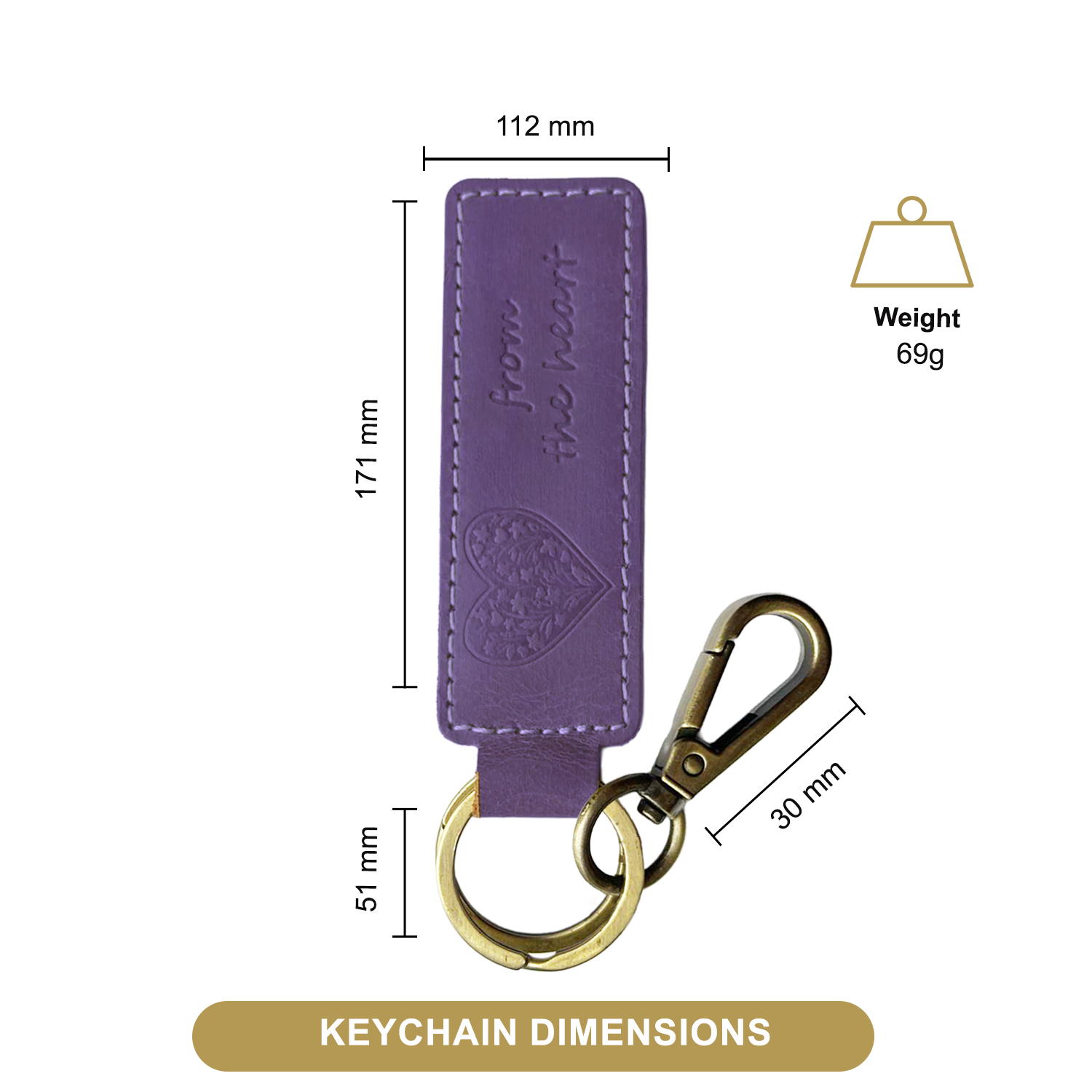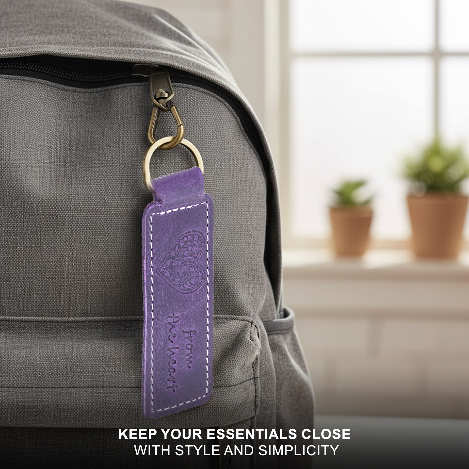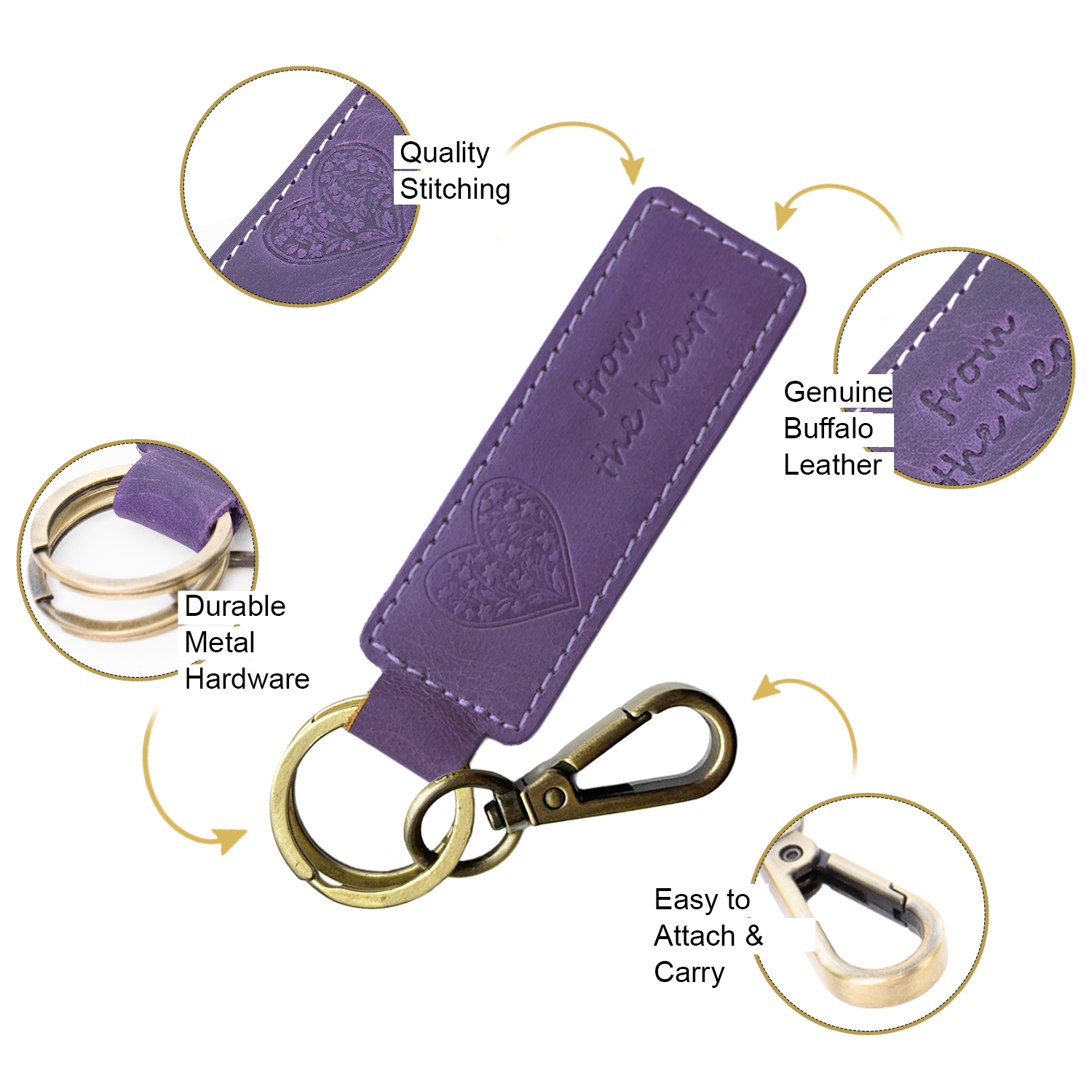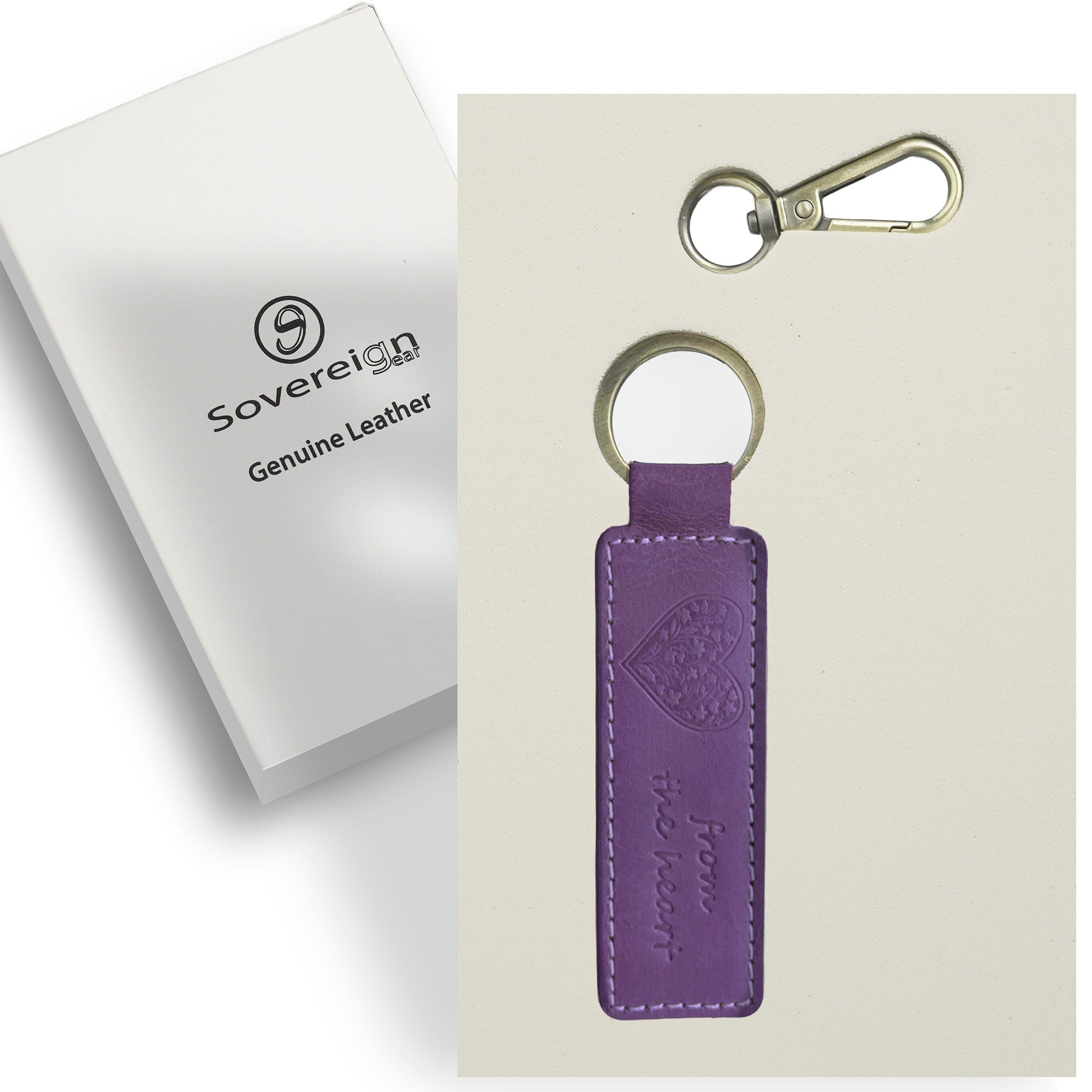 - MEANINGFUL DETAIL - EMBOSSED HEART DESIGN - Celebrate love and connection with this handcrafted purple leather keyring featuring an elegant heart motif embossed on the front. A perfect choice for sentimental gifting or personal keepsakes, this unique design adds charm and personality to your everyday essentials. Made from real leather, it's a thoughtful token that blends durability with heartfelt style. Ideal for loved ones or yourself.