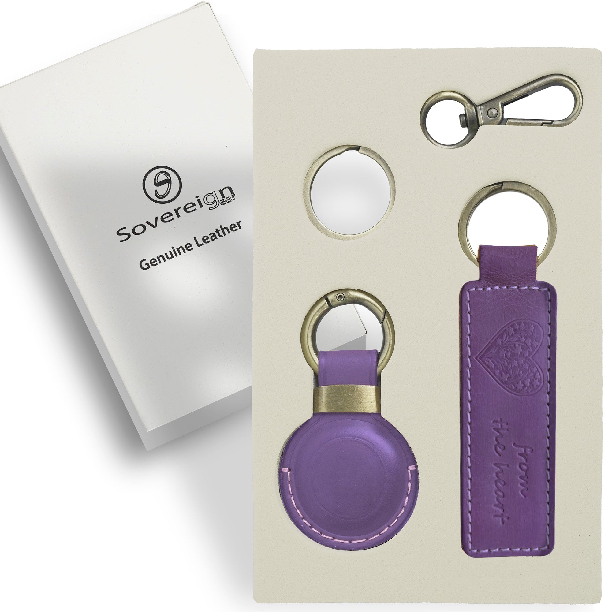 • LUXURY HANDCRAFTED REAL LEATHER Sovereign-Gear's premium set includes a purple leather keyring and matching leather airtag holder, both handcrafted from genuine full-grain leather. The smooth finish, vibrant tone and rich texture offer a stylish yet functional upgrade to your everyday essentials. Designed to last, this elegant set combines durability with timeless appeal.
