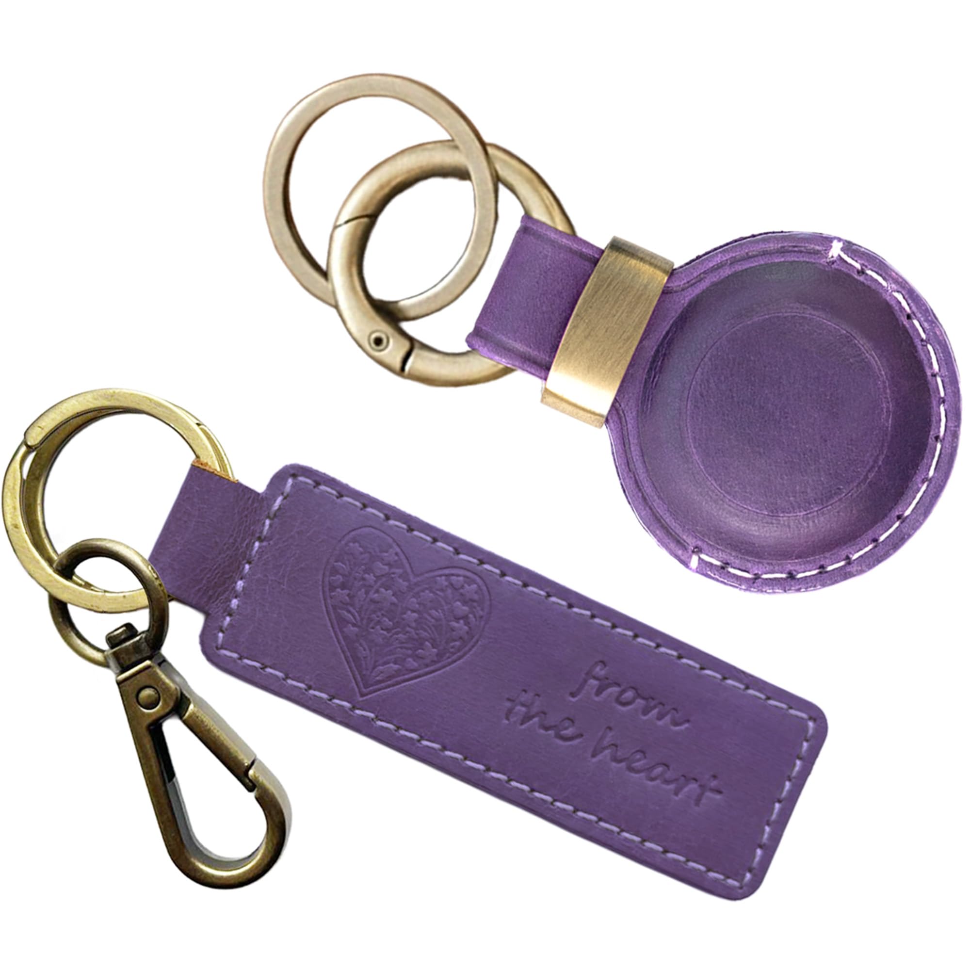 1 Purple Heart Keyring + Purple Airtag Holder - Genuine Handcrafted Leather