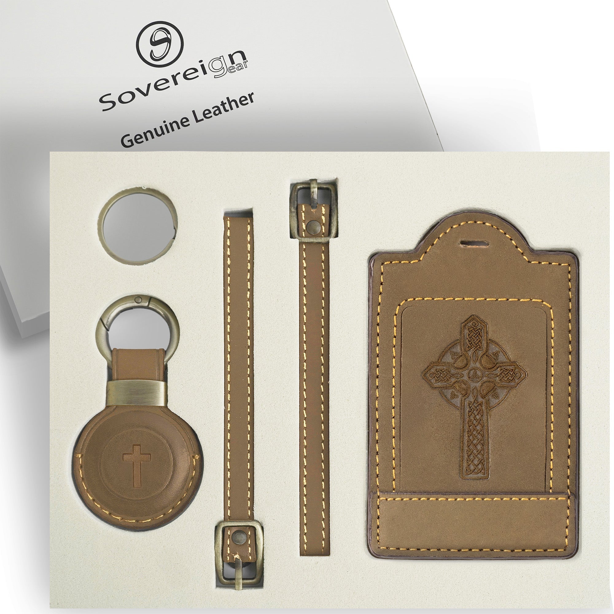 - PREMIUM HANDCRAFTED LEATHER - Crafted from real leather with expert stitching, this Sovereign-Gear luggage tag holder set is designed for durability and timeless style. The rich brown tone and quality craftsmanship make it a standout among suitcase name tag luggage accessories, perfect for frequent travelers who demand both form and function.