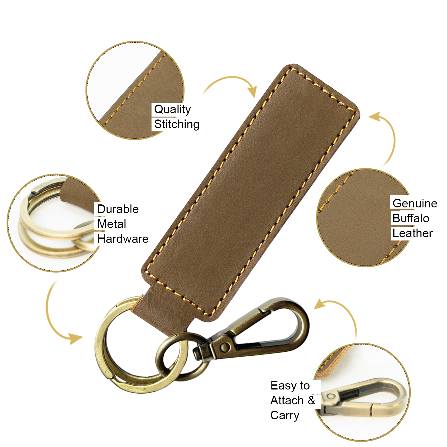 - CLEAN & CLASSIC - PLAIN BROWN BUFFALO LEATHER Made from thick, high-quality buffalo leather, this Sovereign-Gear keyring features a smooth, unembellished finish in a rich brown hue. The minimalist design highlights the natural texture and strength of the leather, offering timeless elegance and rugged durability. A perfect choice for those who appreciate understated style with a premium, handcrafted feel.