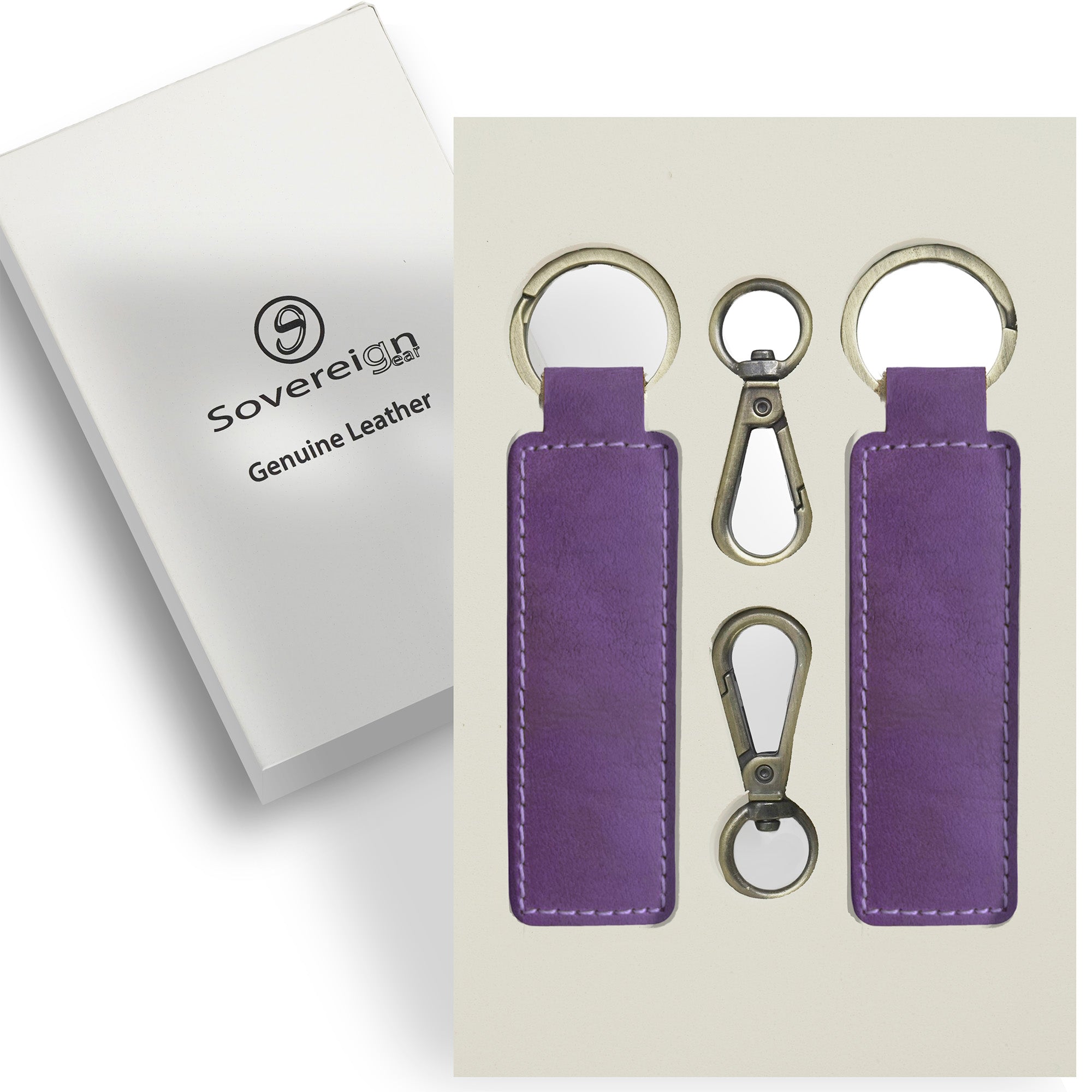 - PREMIUM PURPLE GENUINE LEATHER KEYRING SET - This 2-pack of Sovereign-Gear leather keyrings is made from real, high-quality buffalo leather. The vibrant purple colour adds a unique, stylish touch to your essentials, while the soft yet durable texture ensures long-lasting use. These handcrafted genuine leather keyrings are perfect for anyone seeking elegance and function.