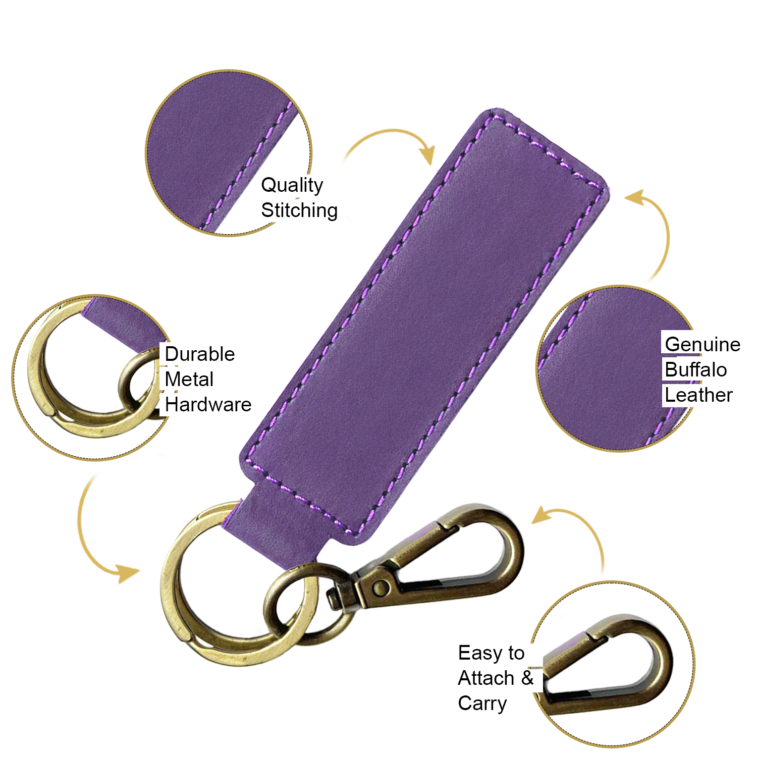 - DESIGNED FOR FUNCTION & SECURITY - Each leather keyring comes equipped with a strong carabiner hook metal spring clip and 2 antique gold rings - offering versatile, secure attachment options. Whether you're clipping it to your bag, belt or keys, this keyring leather duo keeps everything in place and easy to find.