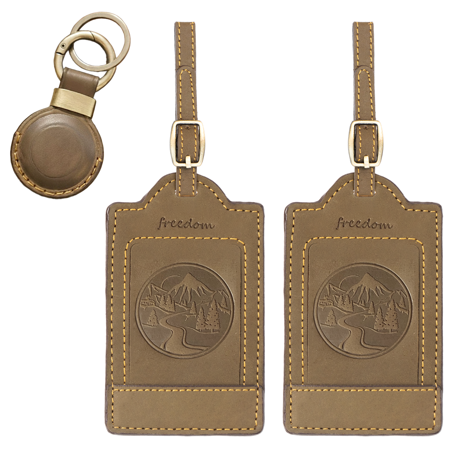 - STYLISH & FUNCTIONAL TRAVEL SET - Sovereign-Gear's brown leather set offers practical luggage identifiers that combine elegance and reliability. Perfect for couples or coordinated travelers, this premium tag and AirTag combo makes your luggage stand out while keeping it safe - an ideal suitcase name tag luggage solution.