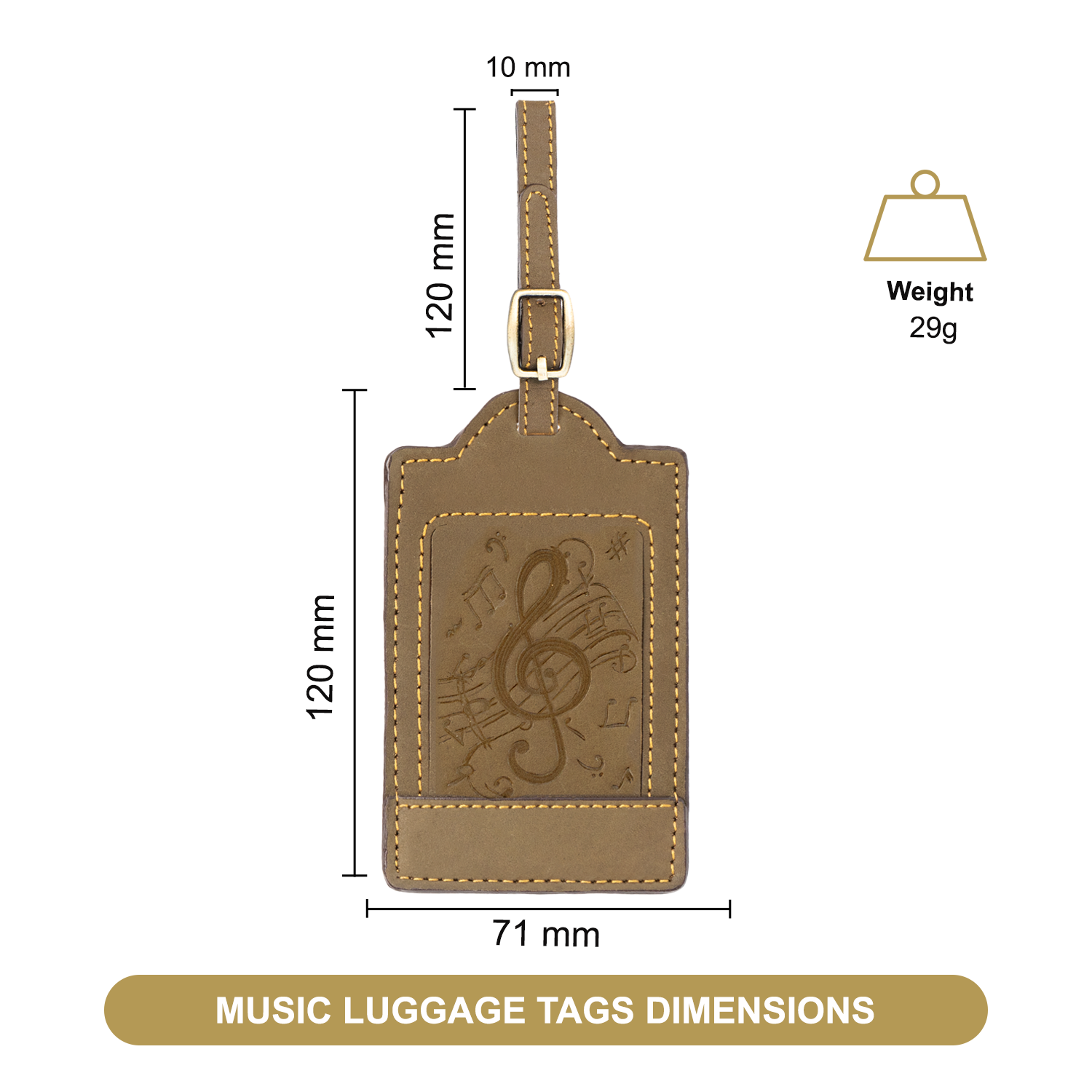 • MUSICAL DESIGN - EMBOSSED TREBLE CLEF & NOTES - This handcrafted brown leather Luggage Tag features an intricately embossed treble clef and musical notes design, offering a stylish nod to music lovers. The detailed embossing adds a unique, artistic flair to this everyday essential. A perfect blend of creativity and craftsmanship, this leather lugtag by Sovereign-Gear brings personality and elegance to your travel.