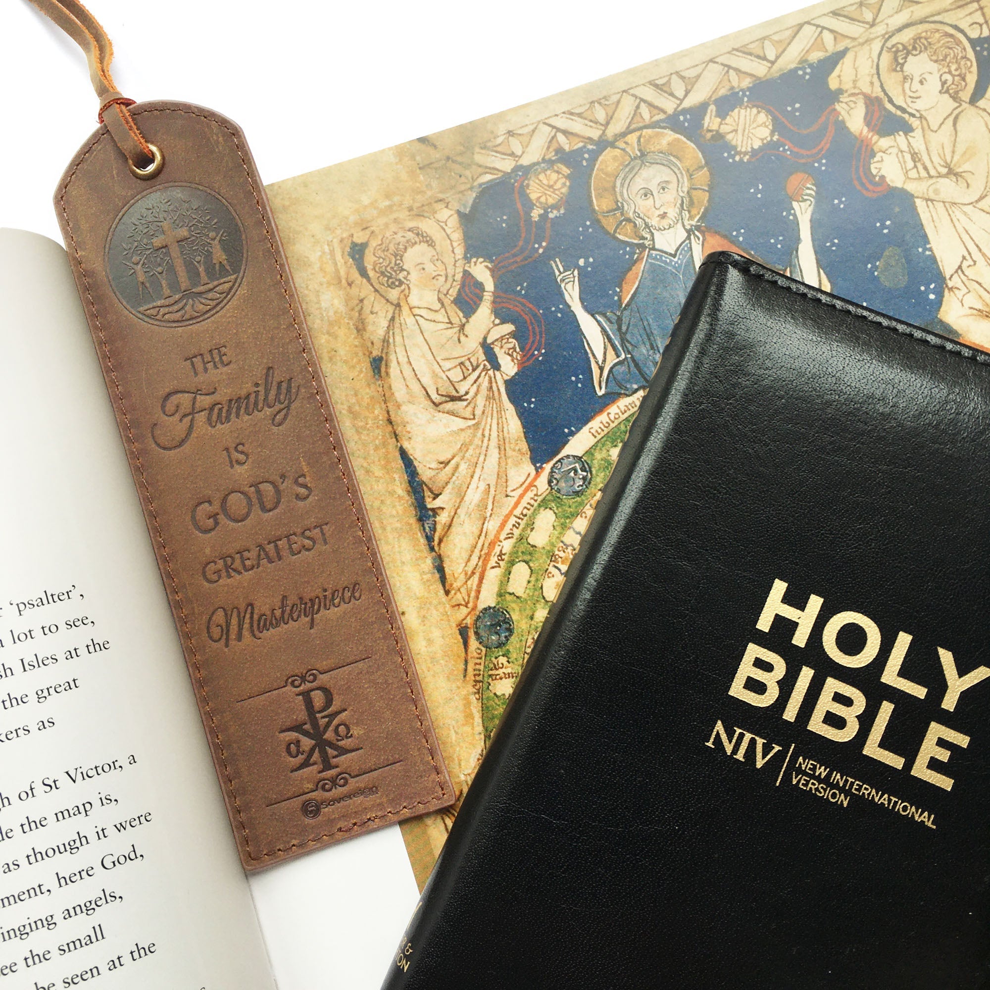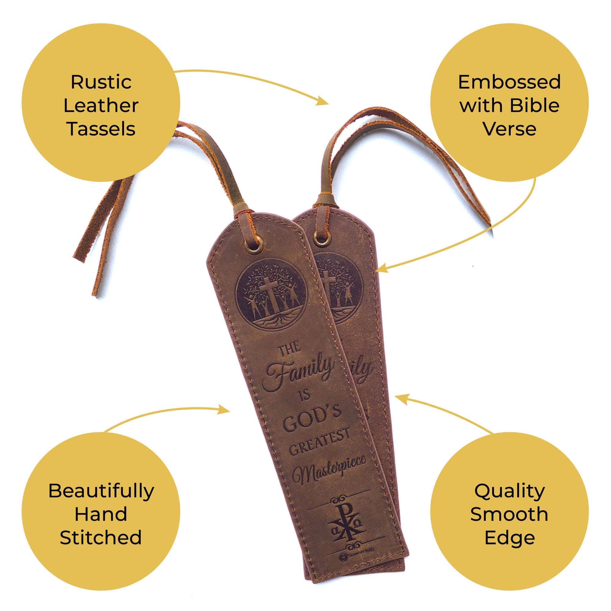 - INSPIRATIONAL BOOKMARK - this religious themed bookmark features the inspiring words: "The Family is God's Greatest Masterpiece". These high-quality leather bookmarks are perfect for a colleague, friend or loved one as they meditate or read any book or novel