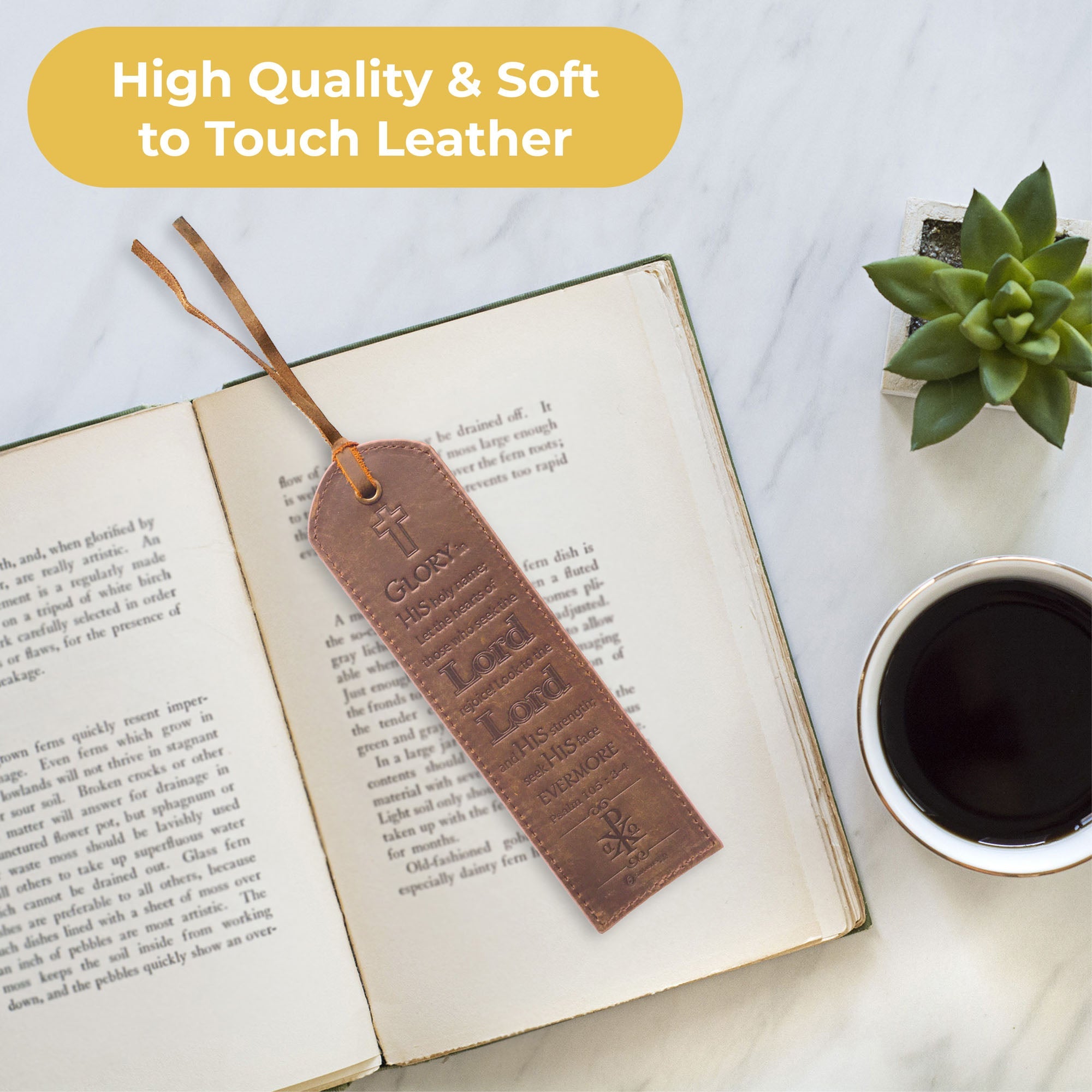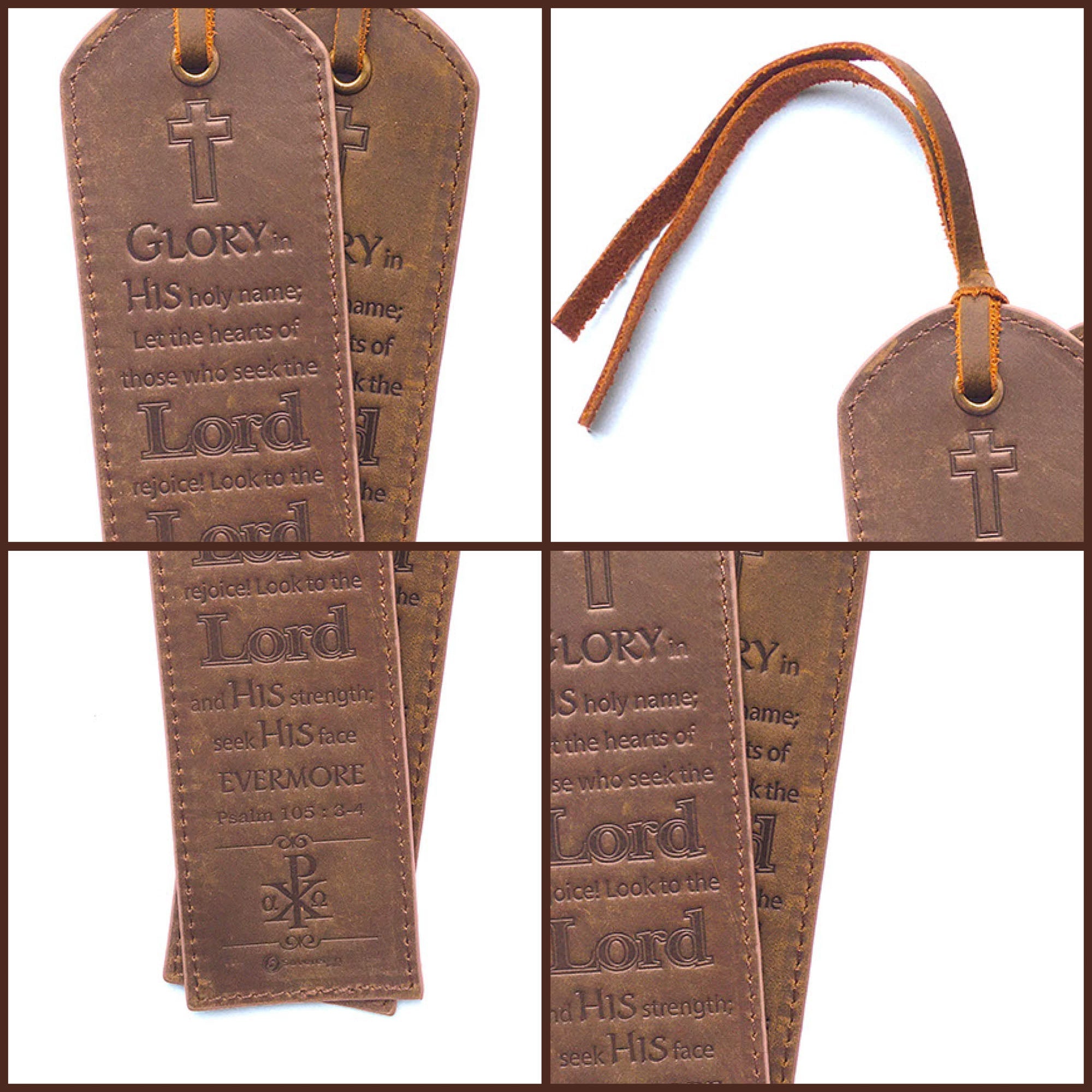 - SCRIPTURE VERSE BOOKMARK - this Bible verse bookmark features the scripture sentiment from Psalm 105 : 3-4: "Glory in His Holy name; let the hearts of those who seek the Lord rejoice! Look to the Lord and His strength; seek His face evermore". These high-quality leather bookmarks offer words of hope and encouragement to a colleague, friend or loved one in their faith as they meditate on the truth of God's word