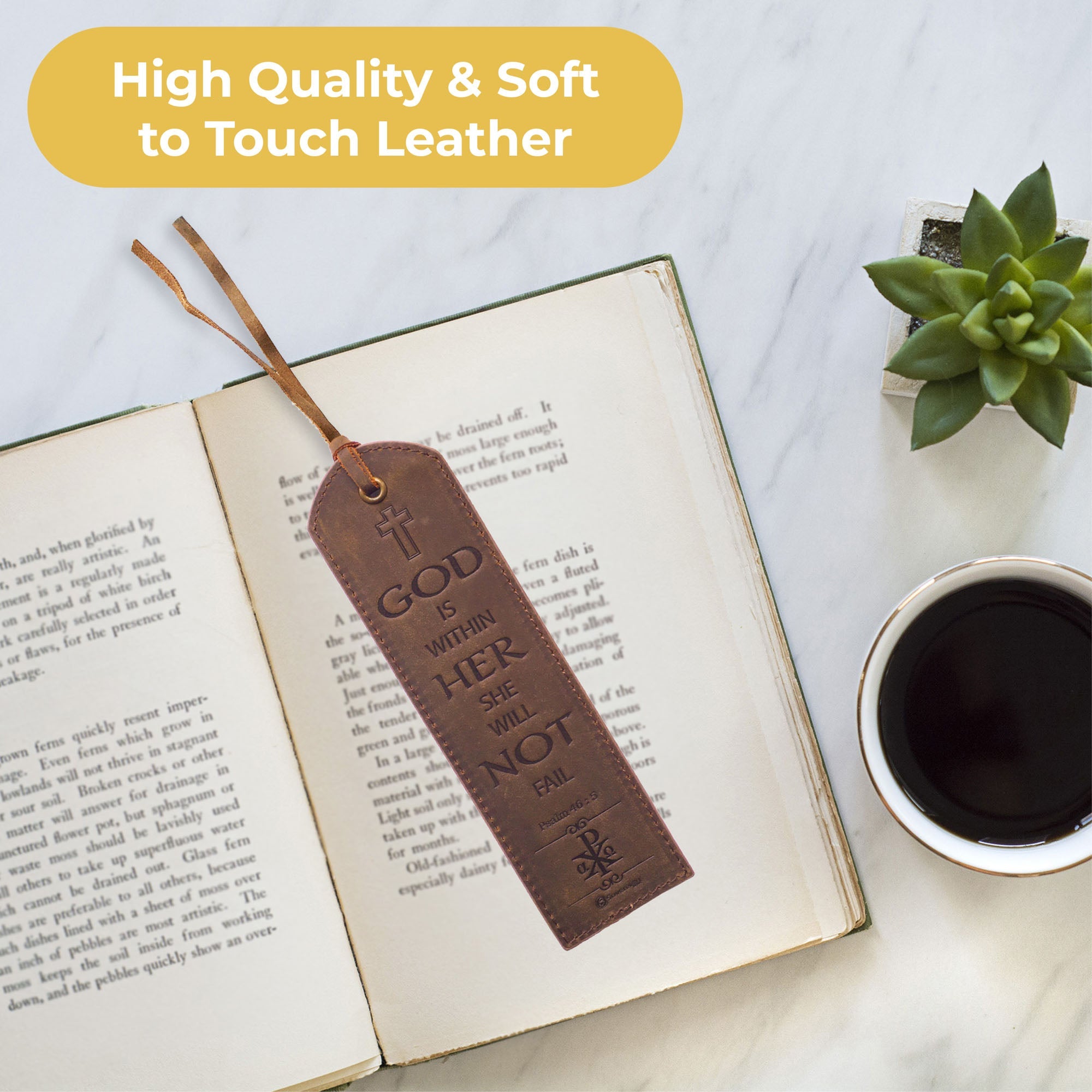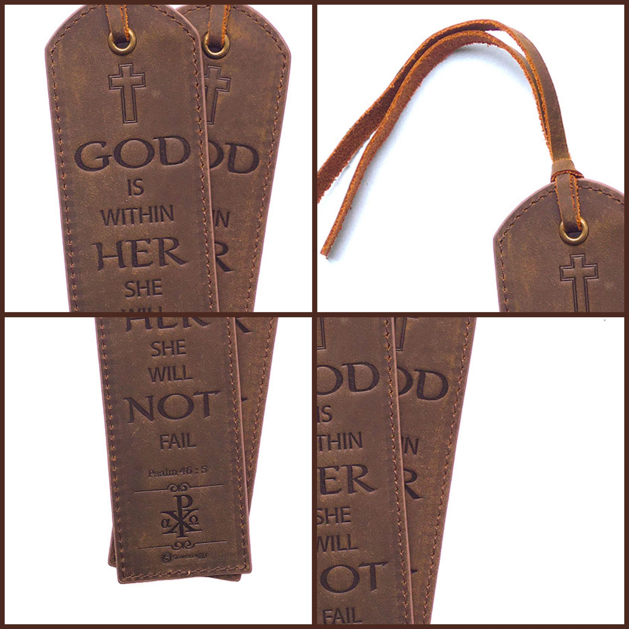 - SCRIPTURE VERSE BOOKMARK - this Bible verse bookmark features the scripture sentiment from Psalm 46 : 5: "God is within her. She will not fail". These high-quality leather bookmarks offer words of hope and encouragement to women, a colleague, friend or loved one in their faith as they meditate on the truth of God's word
