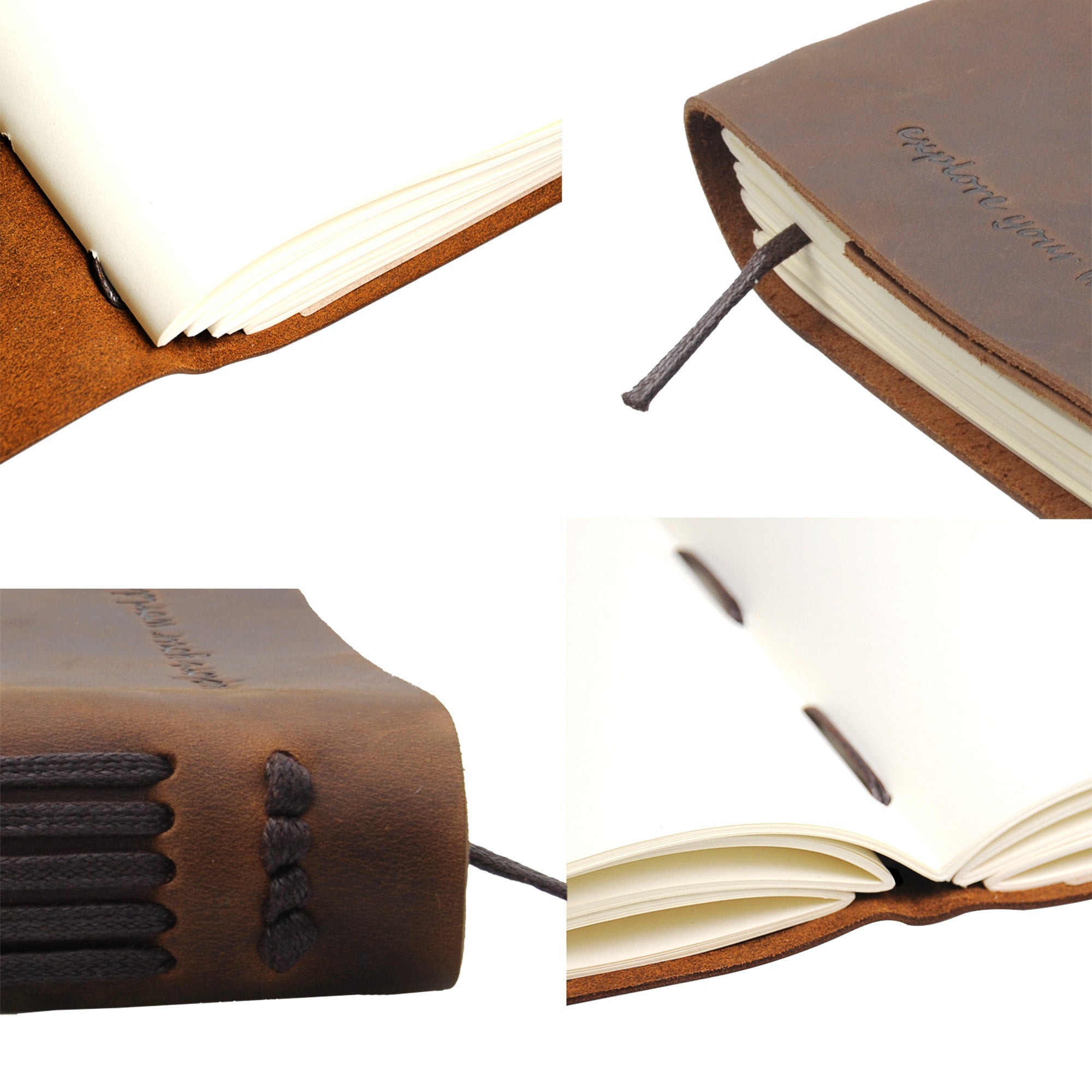 Make a mark on the leather cover then simply rub to wipe away. It will look different over time as it ages and becomes more rustic as you use it. You'll love the smell of this thick real leather - the soft yet sturdy crazy horse leather cover means you can always write with comfort in this notebook, even when there is no table or desk in the office available. The rustic leather strap keeps your journal safely closed when you finish writing.