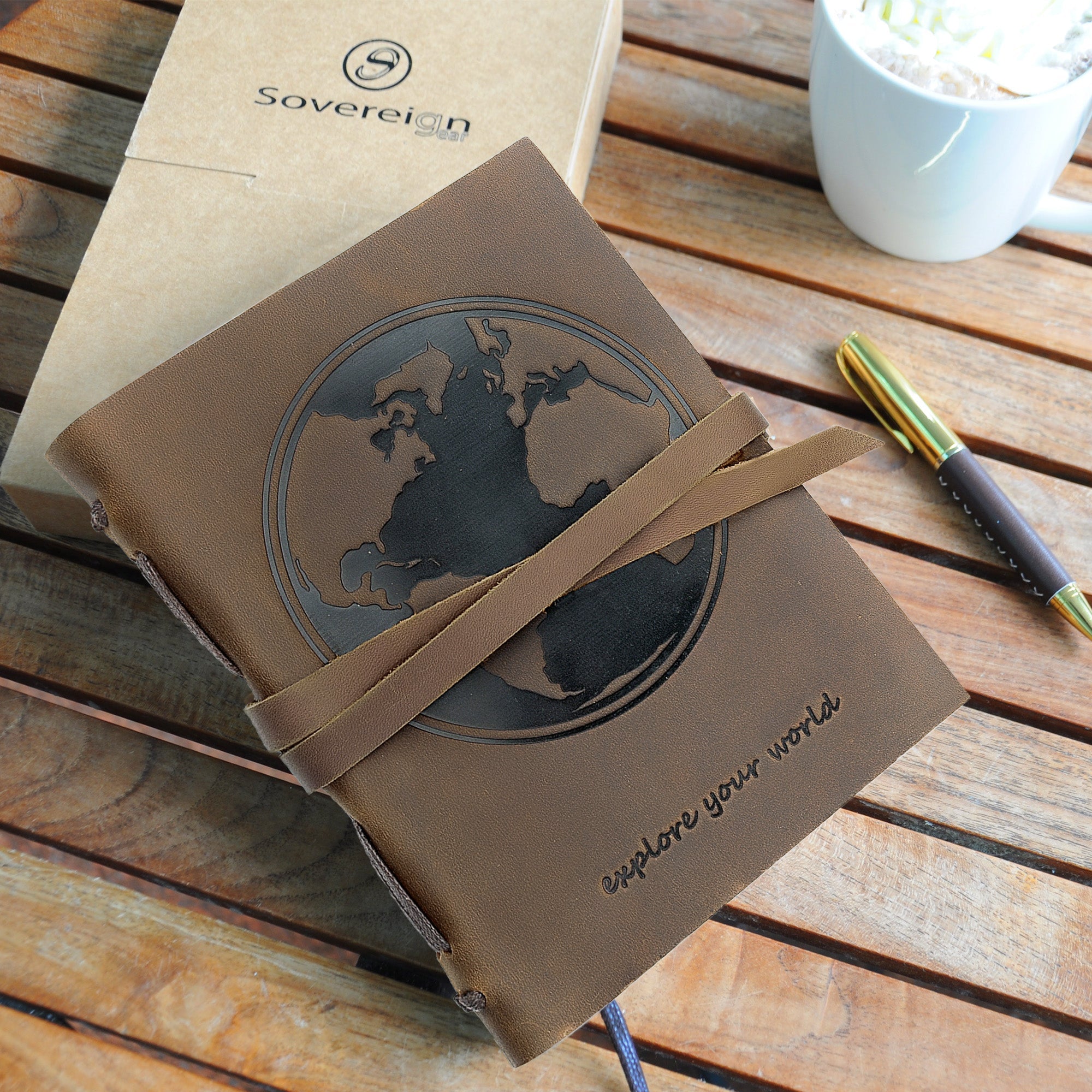 - QUALITY THICK CREAM PAPER 300 pages of plain un lined blank paper sheets (counting both sides) - plenty to jot down a note, memories, daily plans, scribble a rough sketch or ideas for your poetry, novel or bullet journal. This timeless leather book of life journal is not refillable. Matching map bookmark NOT included but available online - search for Sovereign-Gear. No bleed through with fountain pens so any pen type can be used in this retro real leather notebook