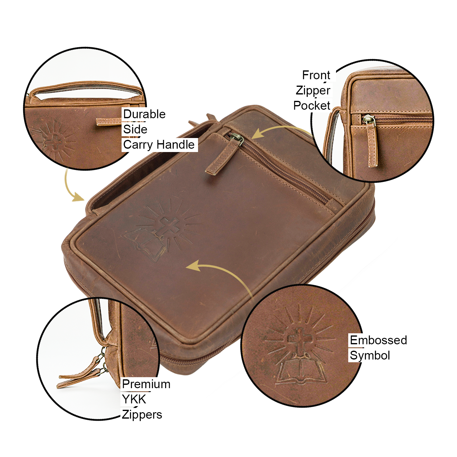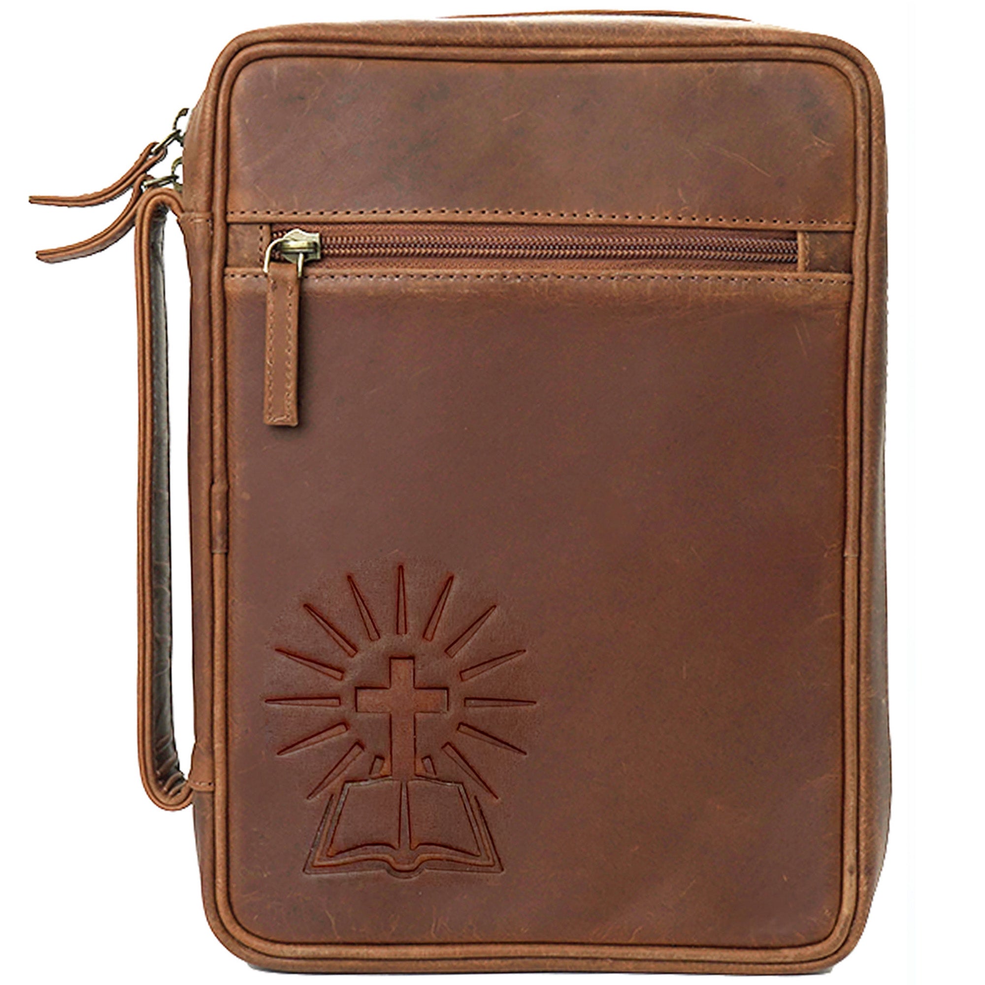 - MAXIMUM PROTECTION & EASY TO CARRY - With extra cushioning in the center spine area, this bible carrier shields your treasured Bible or book from daily wear. Strong YKK zippers keep contents secure, while the reinforced leather handle makes it easy to carry. Ideal as a bible travel case, bible bag for men, or bible cover with zipper, it ensures comfort and long-lasting use.