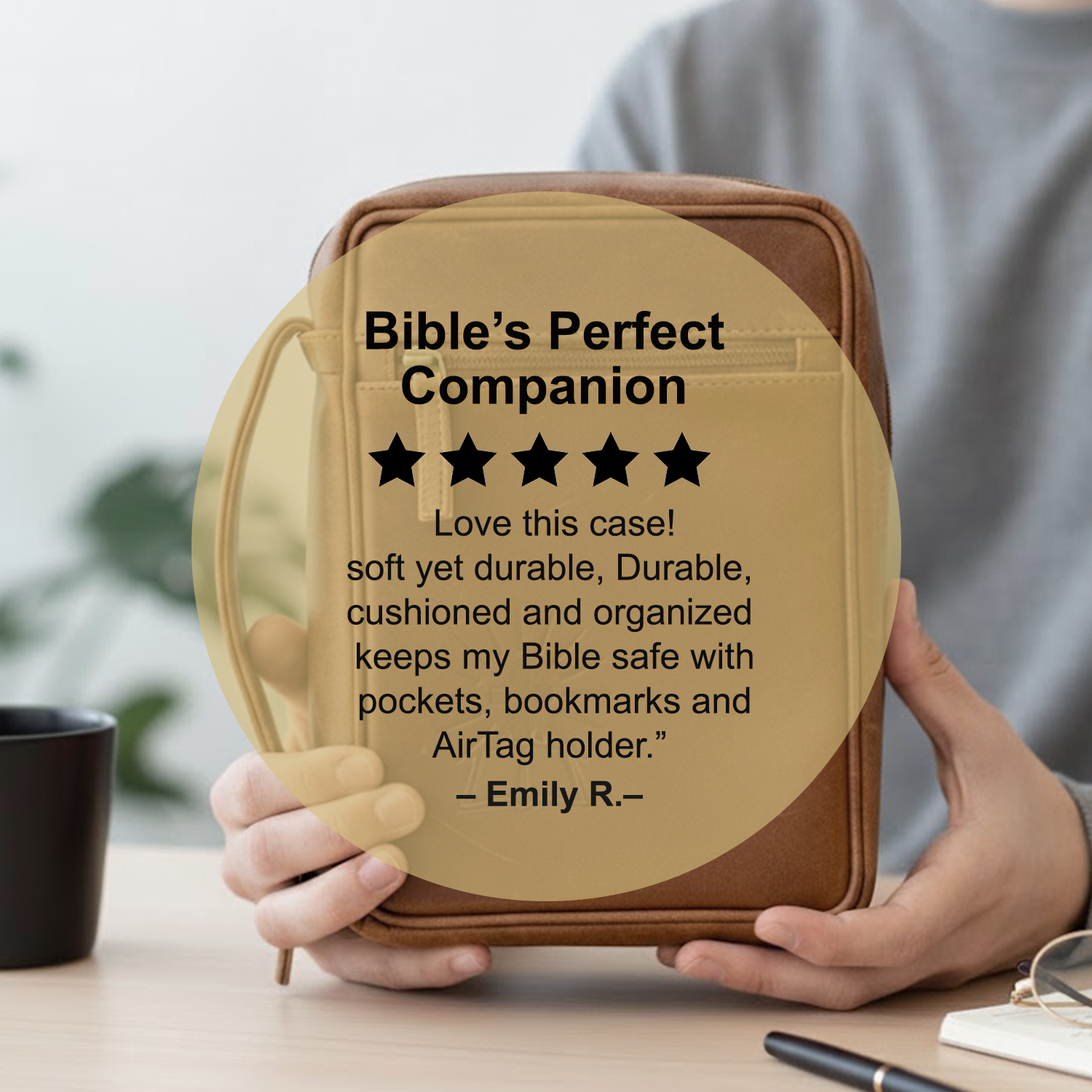 Three ribbon bookmarks allow you to mark multiple passages, and the included matching leather bookmark and AirTag holder add convenience and peace of mind. Extra cushioning protects the spine of your Bible, while strong YKK zippers and a reinforced leather handle ensure comfortable carrying. Built with reinforced stitching and rugged hardware, this Bible case is designed to last for years of worship, study, and travel.