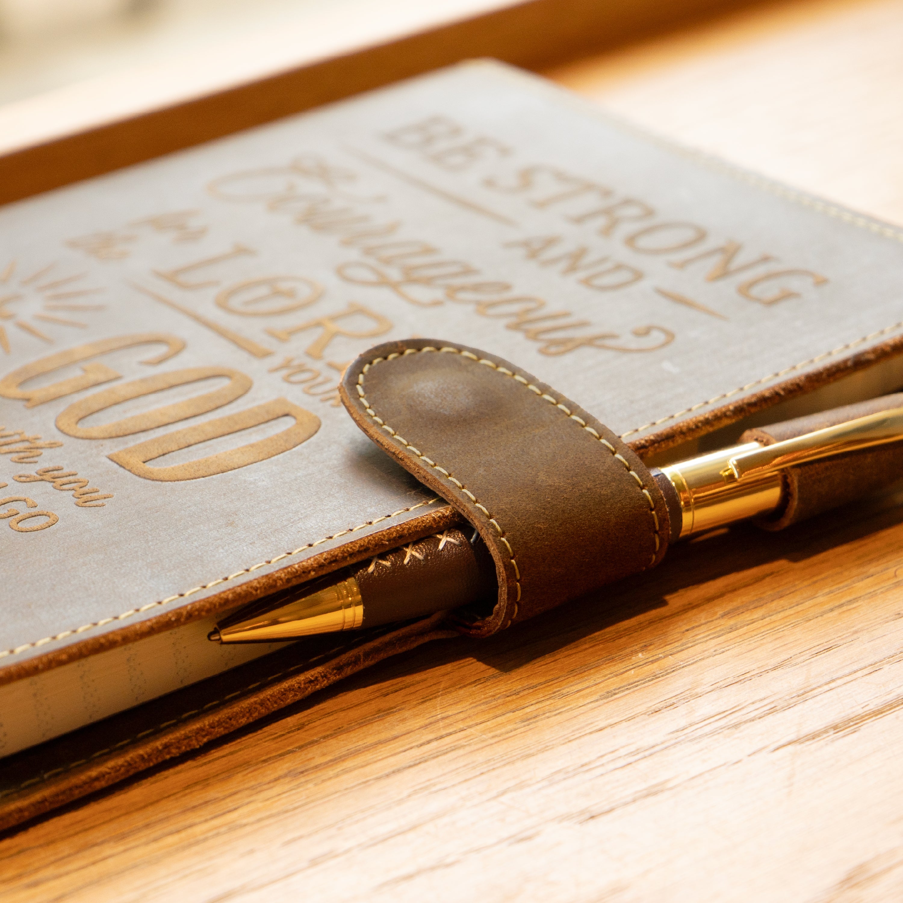 This refillable leather journal features the empowering Joshua 1:9 verse “Be Strong & Courageous,†embossed alongside a detailed design that inspires faith, confidence, and daily reflection. Ideal for devotionals, prayer journaling, creative writing, or quiet moments, it blends meaningful scripture with artisan craftsmanship to create a journal that feels personal and uplifting. Its warm, handcrafted character makes it a thoughtful gift for writers, students, and anyone seeking encouragement.