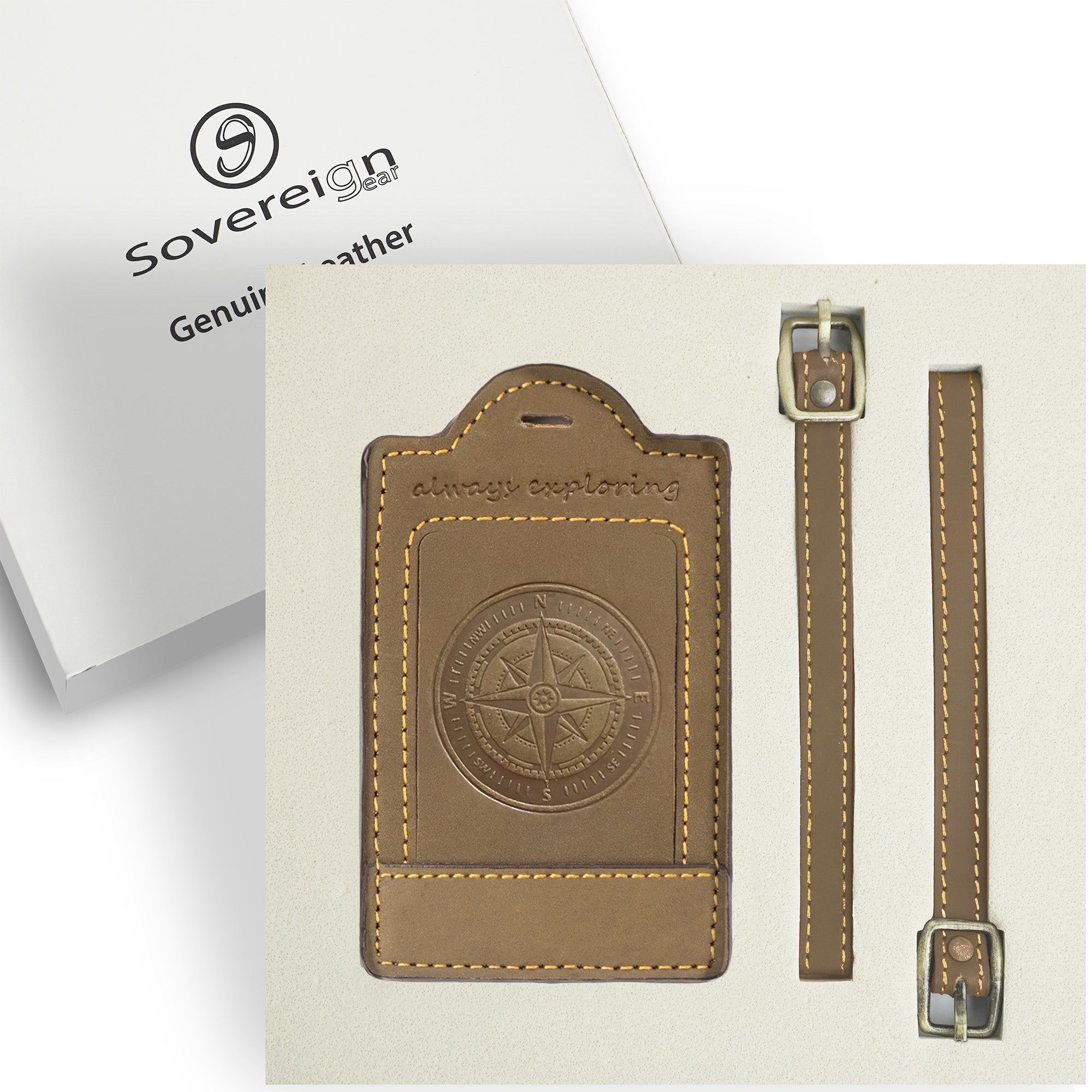 ✅ EMBOSSED COMPASS DESIGN - INSPIRED BY EXPLORATION Featuring a detailed compass motif embossed into buffalo brown leather, this Sovereign-Gear luggage tag celebrates the spirit of adventure. Perfect for frequent flyers and travel lovers, the timeless design adds a distinctive touch to your suitcase name tag luggage while offering both style and meaning. A rugged yet elegant nod to those always ready to explore new horizons.