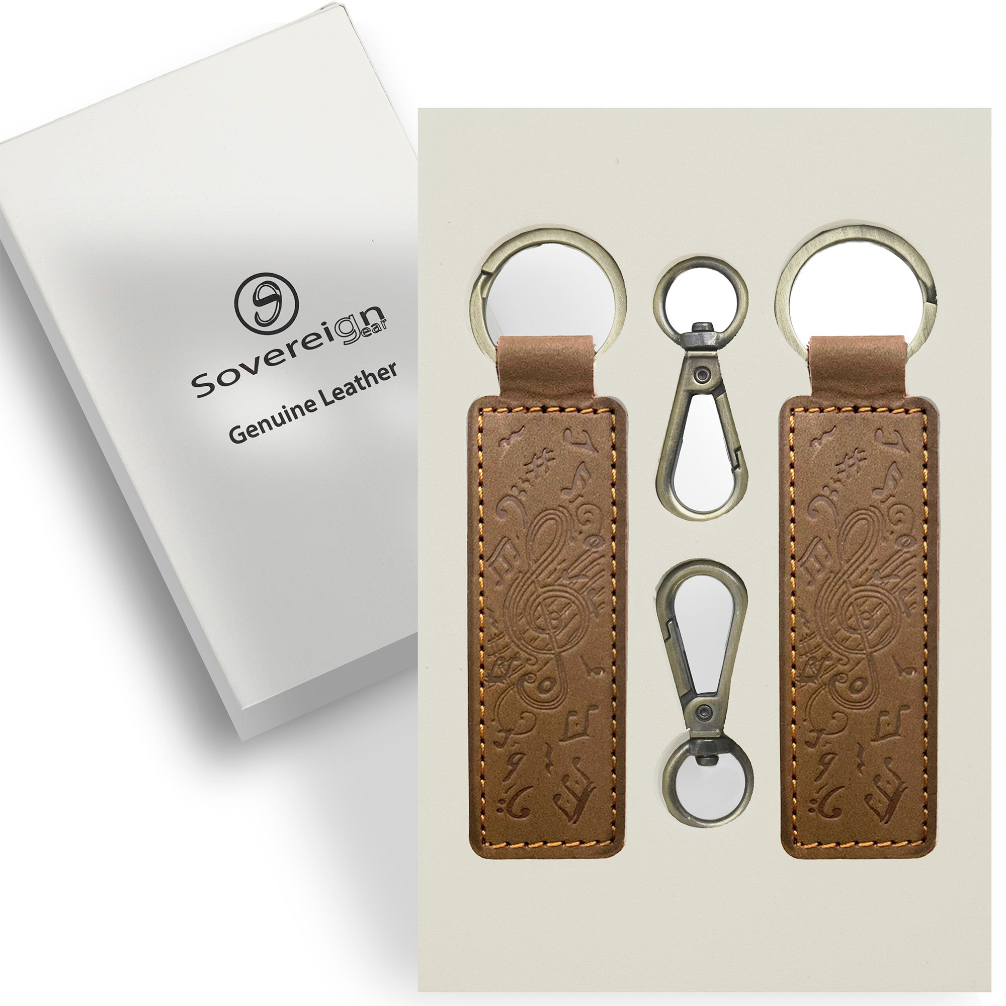 ✅ MUSICAL DESIGN - EMBOSSED TREBLE CLEF & NOTES This handcrafted brown leather keyring features an intricately embossed treble clef and musical notes design, offering a stylish nod to music lovers. The detailed embossing adds a unique, artistic flair to this everyday essential. A perfect blend of creativity and craftsmanship, this leather key fob by Sovereign-Gear brings personality and elegance to your key organization.
