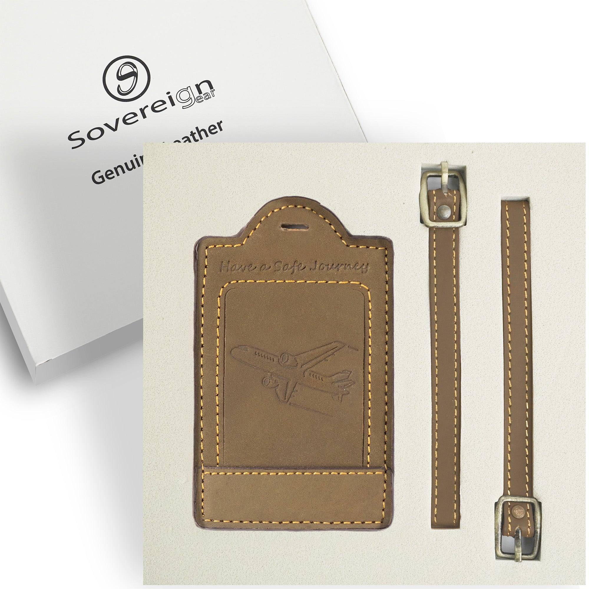 - EMBOSSED PLANE DESIGN - PERFECT FOR AVIATION LOVERS Crafted for frequent flyers and aviation fans, this Sovereign-Gear brown leather luggage tag features a striking embossed plane design. Symbolizing adventure and exploration, it adds a personal, travel-inspired touch to your bags. A stylish and practical travel companion, it blends craftsmanship with character - ideal for globetrotters and weekend jet-setters alike.