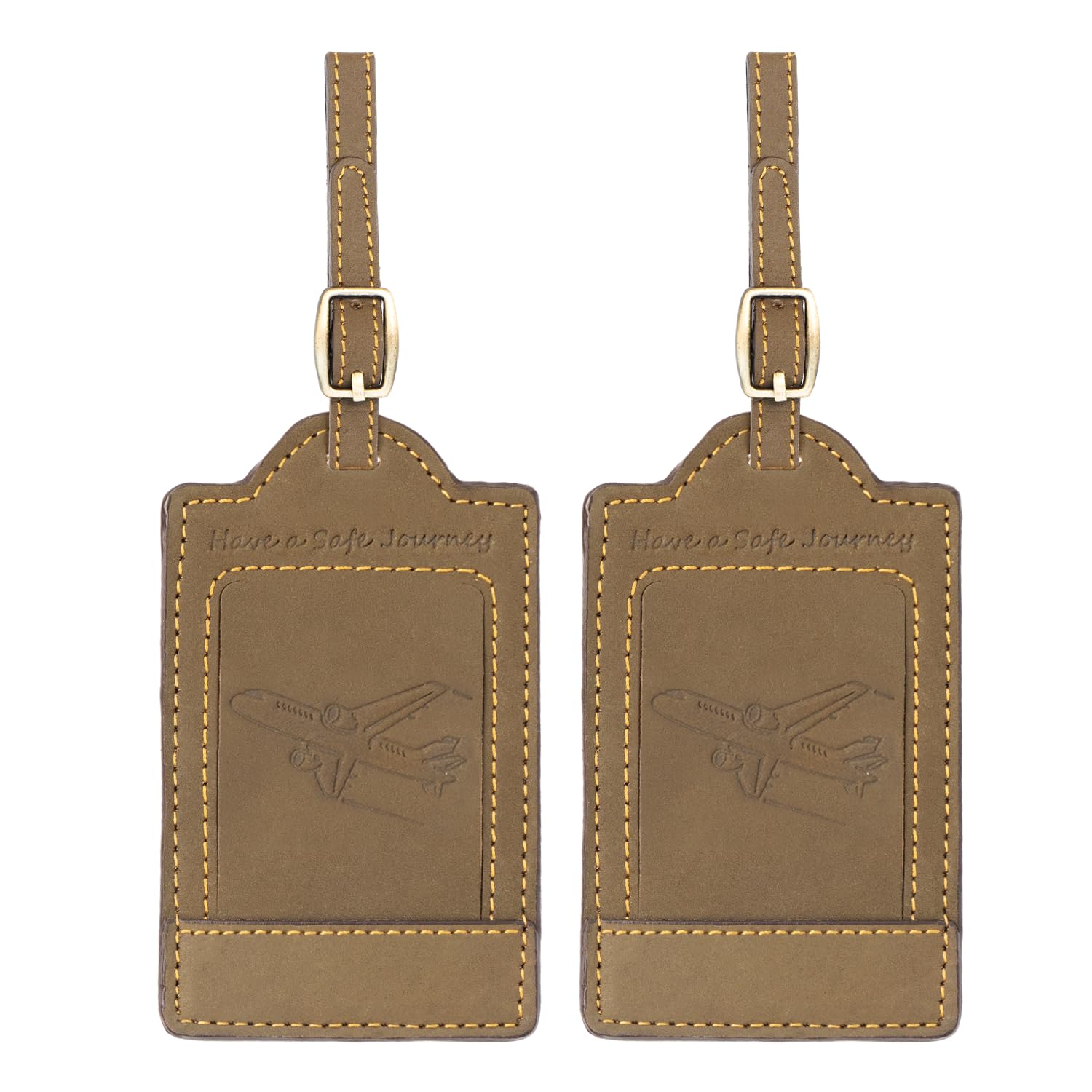 - TWIN-PACK VALUE FOR COORDINATED TRAVEL This set of two brown leather tags is ideal for pairing with carry-on and checked bags. Identical quality and finish make them a smart, coordinated choice among luggage identifiers. Whether you're gifting or upgrading your gear, this duo brings practicality and elegance to your travel accessories.