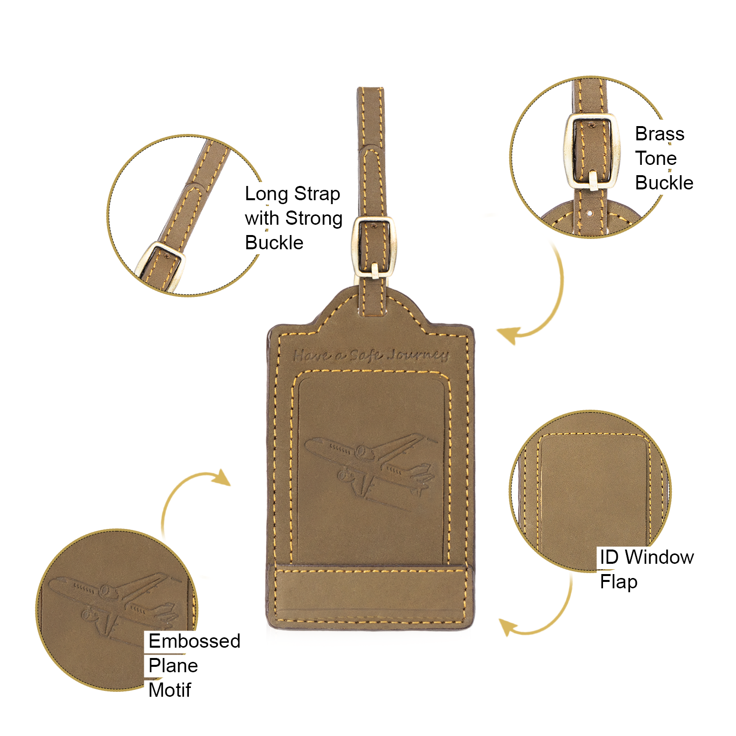 - LONG STRAP WITH STRONG BUCKLE Equipped with an extended leather strap and solid buckle, these suitcase tags for luggage offer enhanced versatility. Whether attaching to suitcase handles, backpacks, or duffels, the secure fit resists tugging and wear. Perfect for travel professionals who value strength and simplicity in a suitcase name tag luggage system.