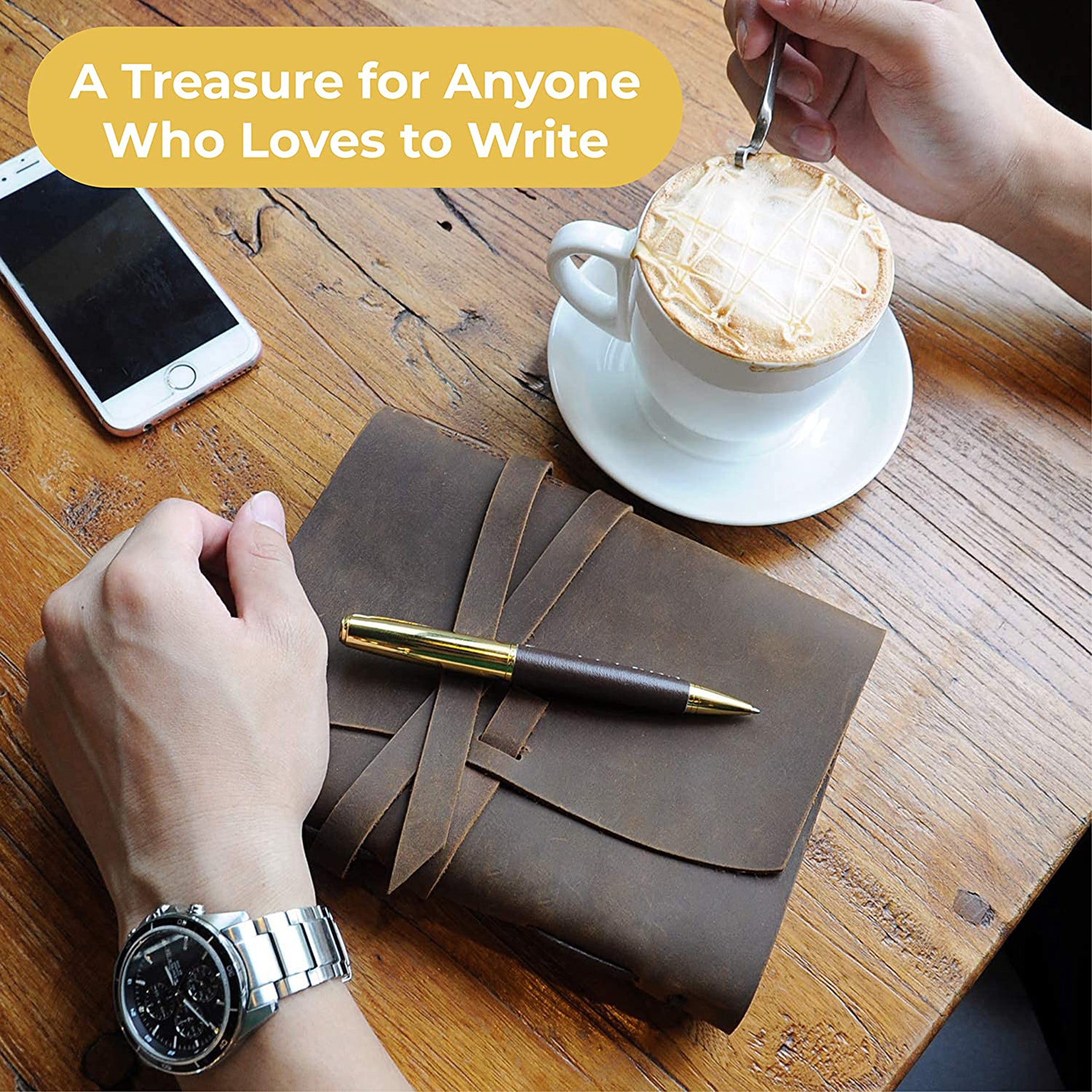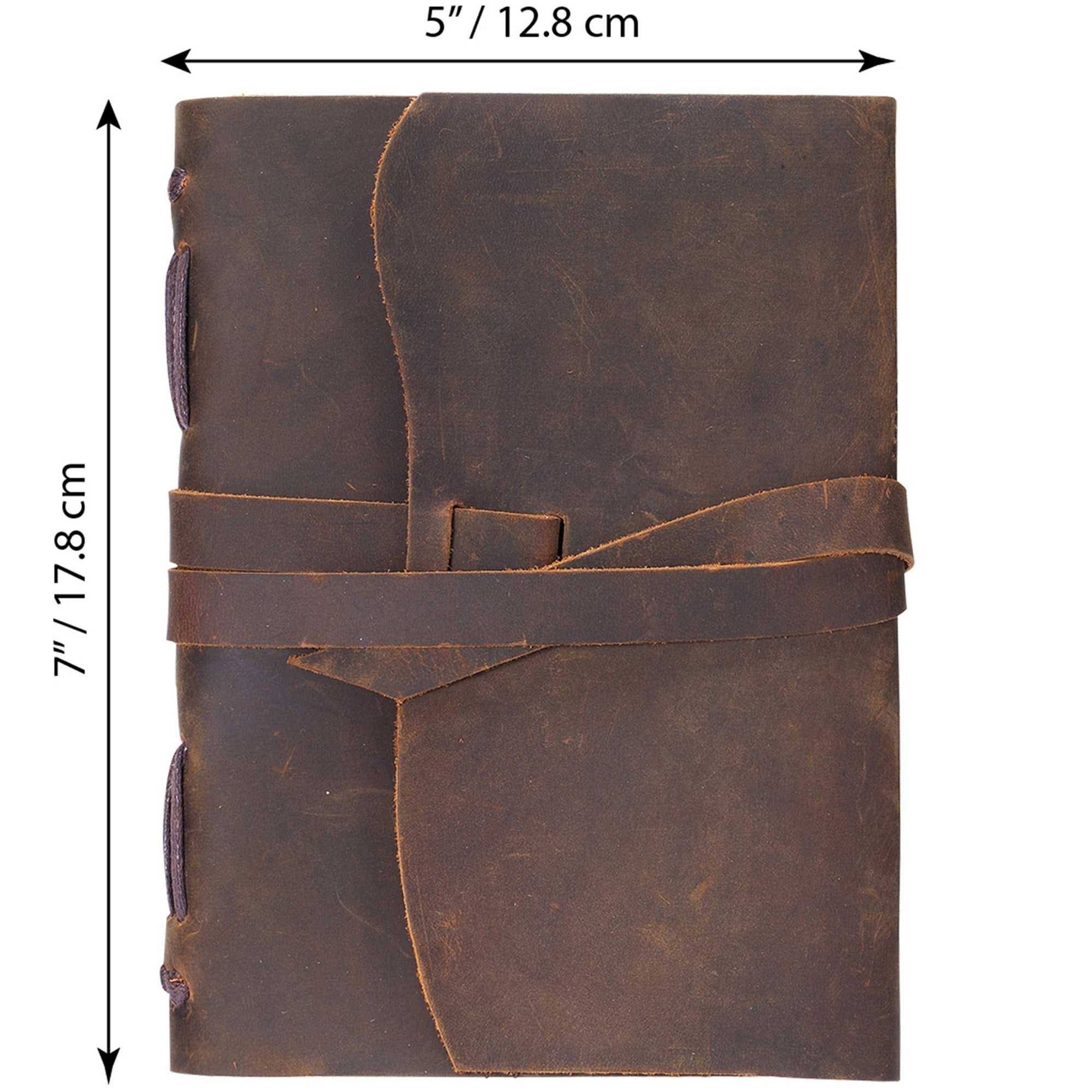 Make a mark on the vintage leather journal cover then simply rub to wipe away. It will look different over time as it ages and becomes more rustic as you use it. You'll love the smell of this thick real leather - the soft yet sturdy crazy horse leather cover means you can always write with comfort in this notebook, even when there is no table or desk available. The rustic leather strap keeps your journal safely closed when you finish writing.