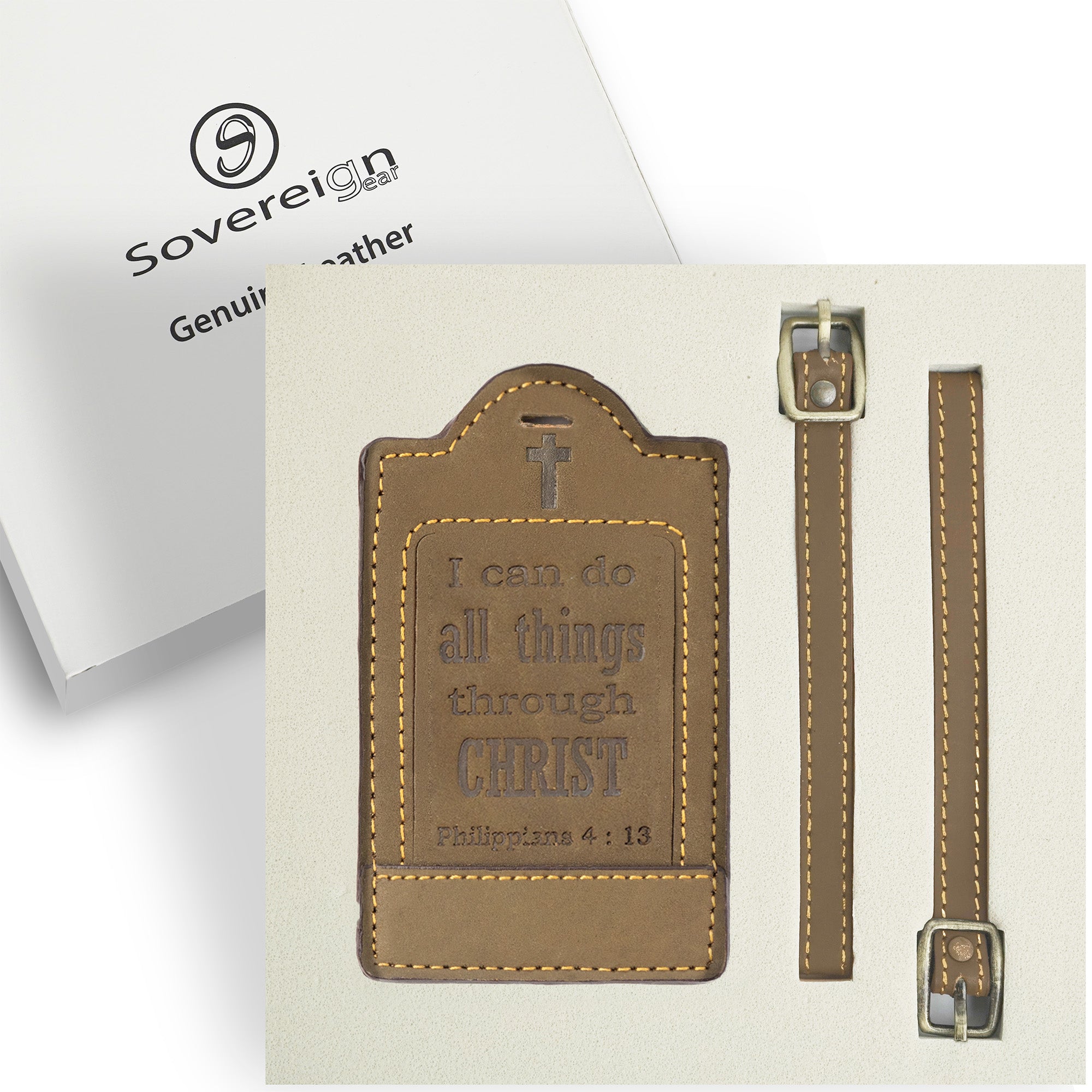 ✅ INSPIRATIONAL DESIGN – EMBOSSED RELIGIOUS VERSE Celebrate faith and craftsmanship with this Sovereign-Gear luggage tag, featuring the uplifting verse “I Can Do All Things Through Christ” from the Book of Philippians, beautifully embossed on premium brown leather. A meaningful gift for spiritual milestones or personal inspiration, blending timeless style with soulful detail.