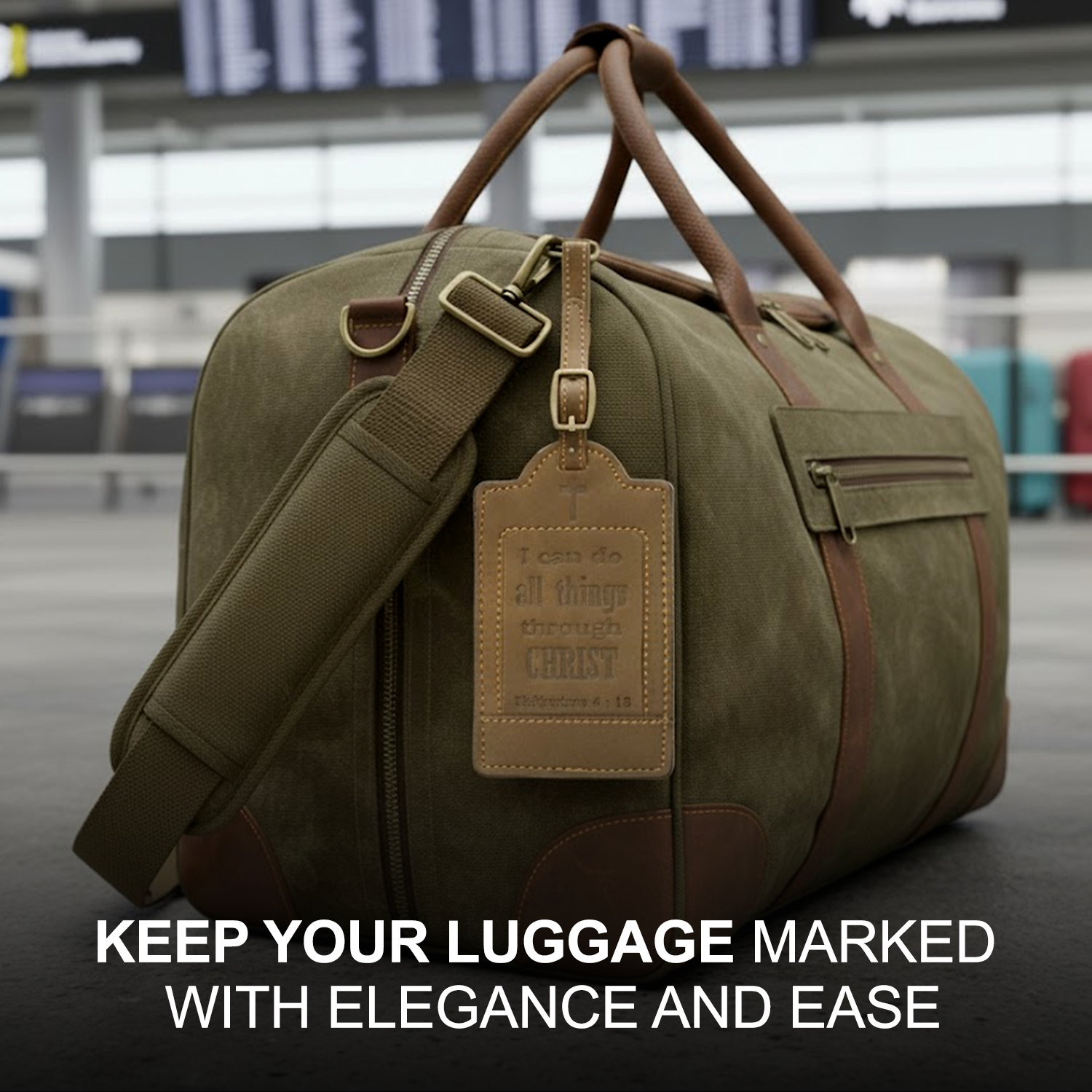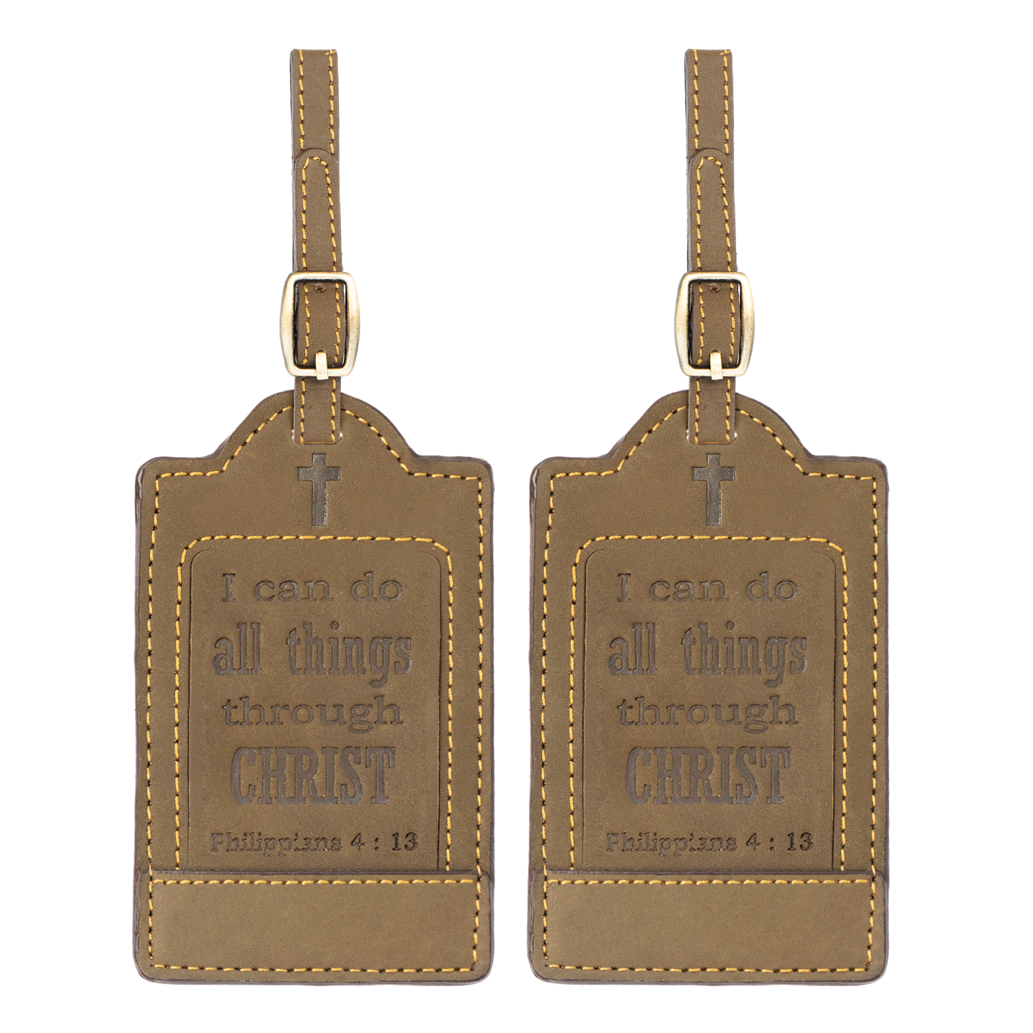 2 Leather Luggage Tags - 'Philippians 4:13' Religious Embossed - Genuine Handcrafted Leather