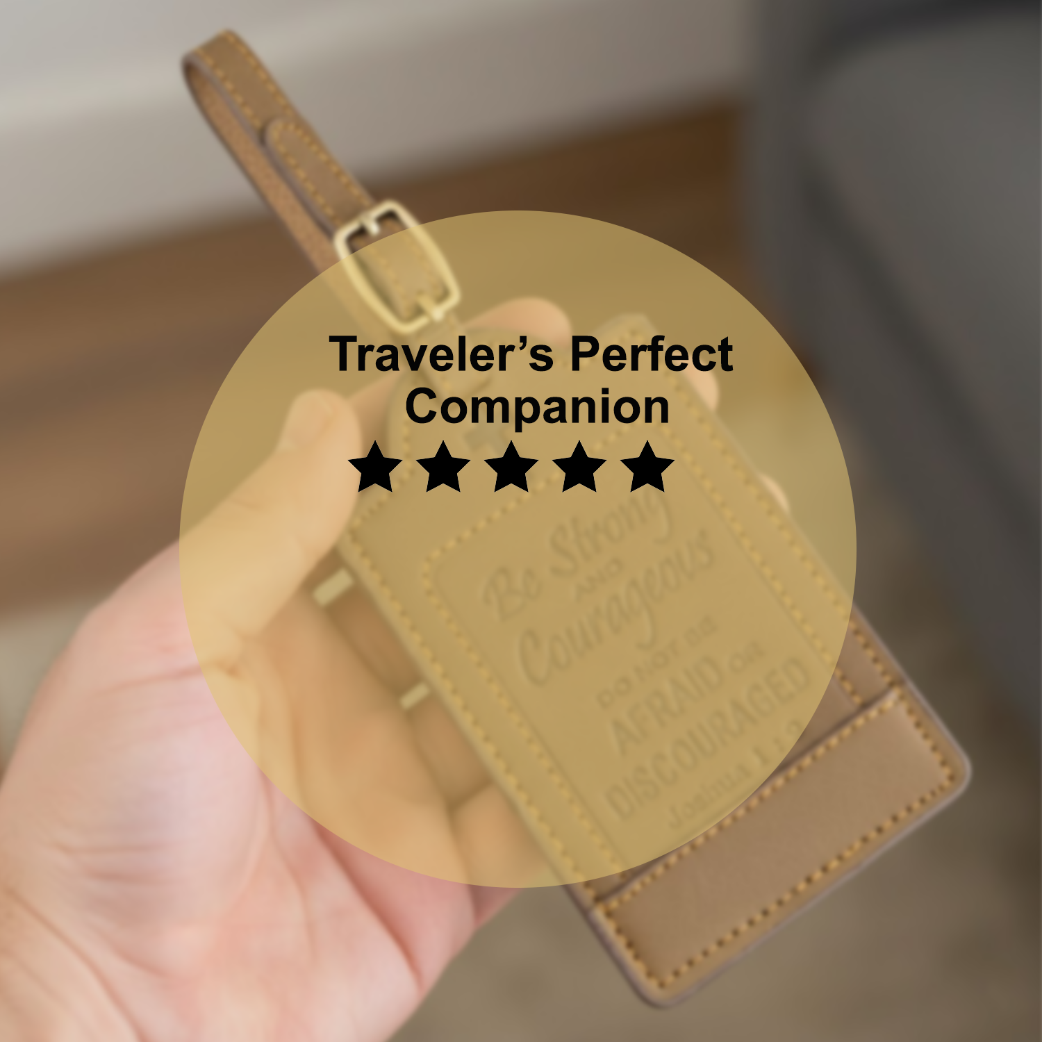 ✅ INSPIRATIONAL DESIGN – EMBOSSED RELIGIOUS VERSE Celebrate faith and craftsmanship with this Sovereign-Gear luggage tag, featuring the empowering verse “Be Strong & Courageous” from the Book of Joshua, beautifully embossed on premium brown leather. A meaningful blend of timeless style and spiritual strength - perfect for daily inspiration or thoughtful gifting.