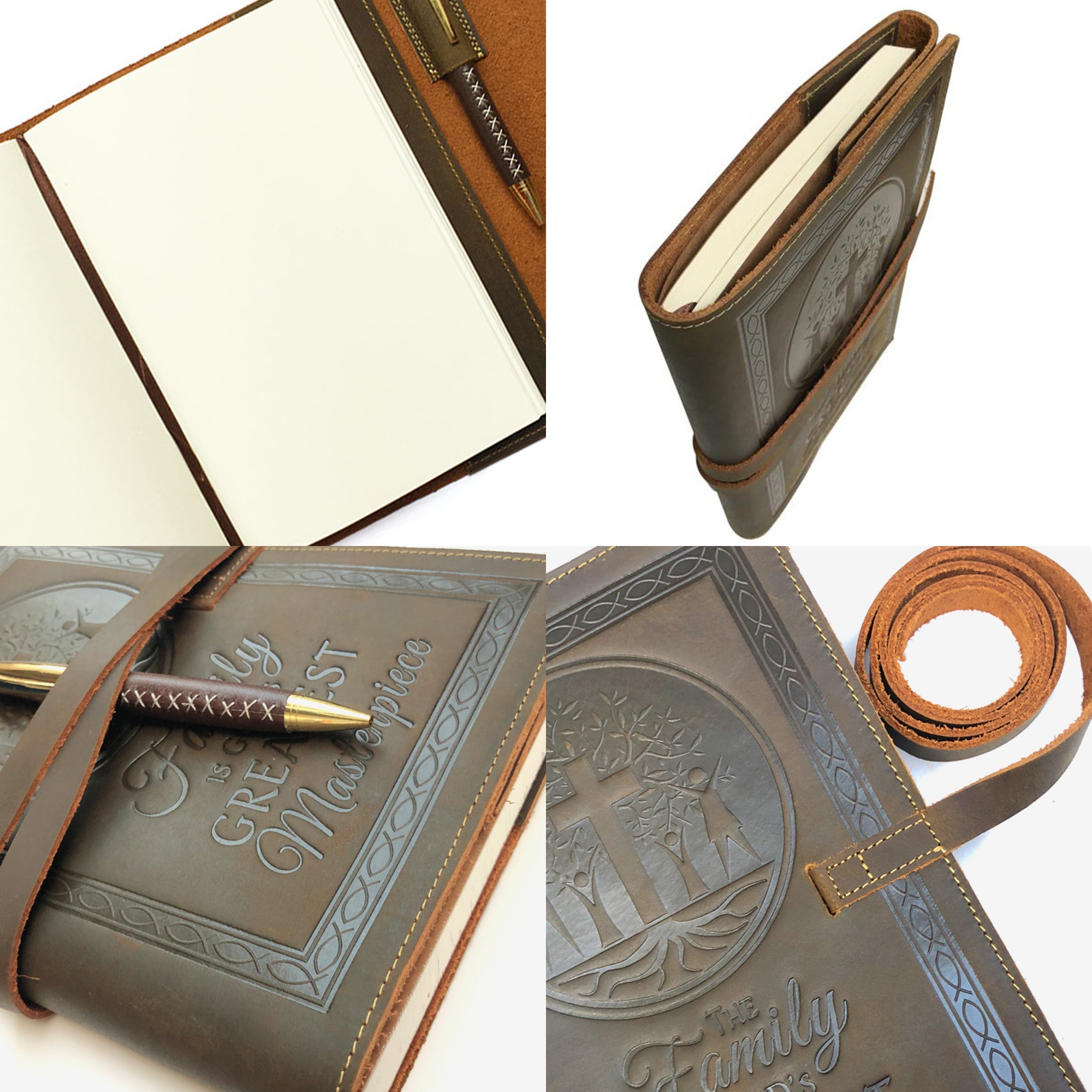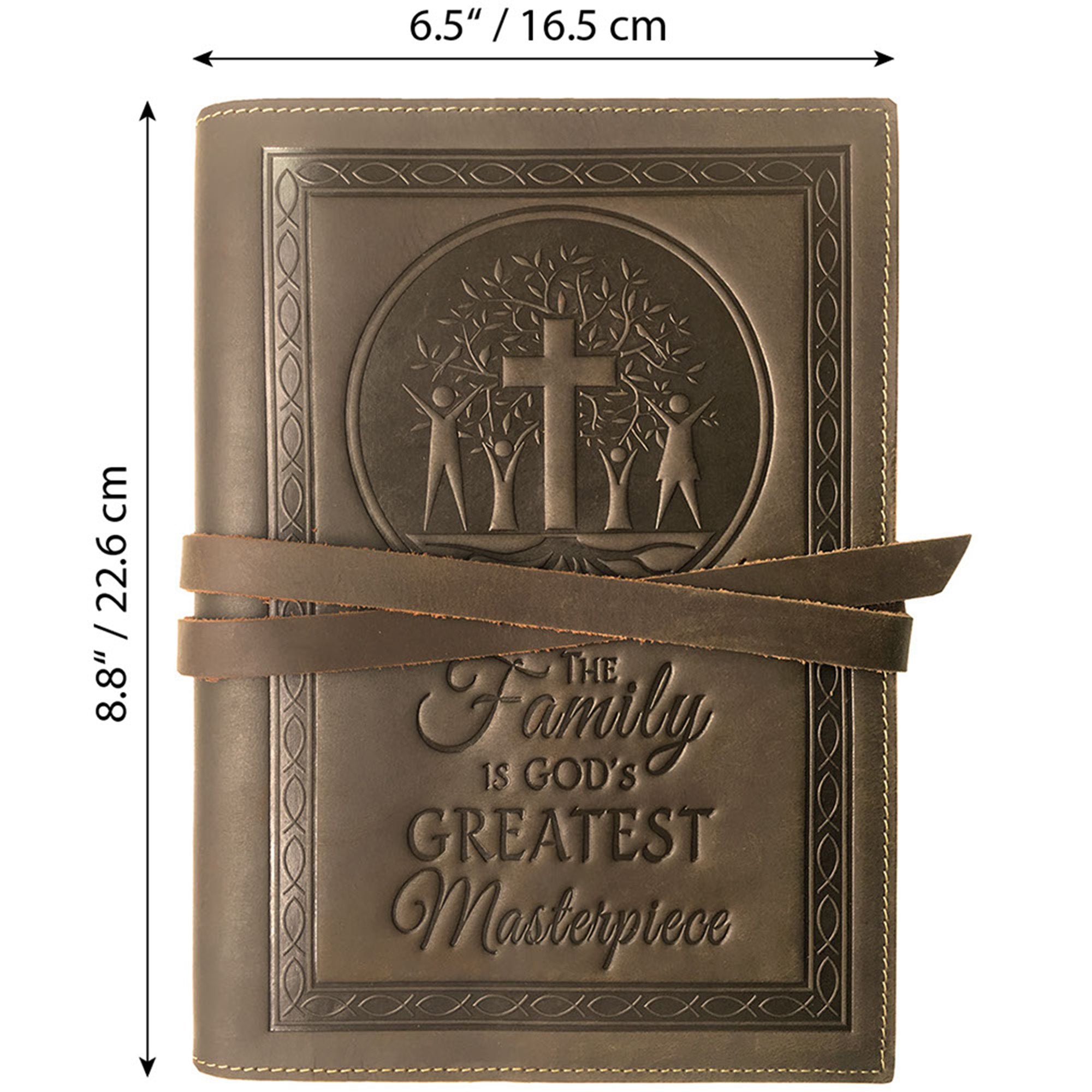Religious Refillable 'God's Family' Embossed Leather Journal + Pen - Genuine Handcrafted Leather