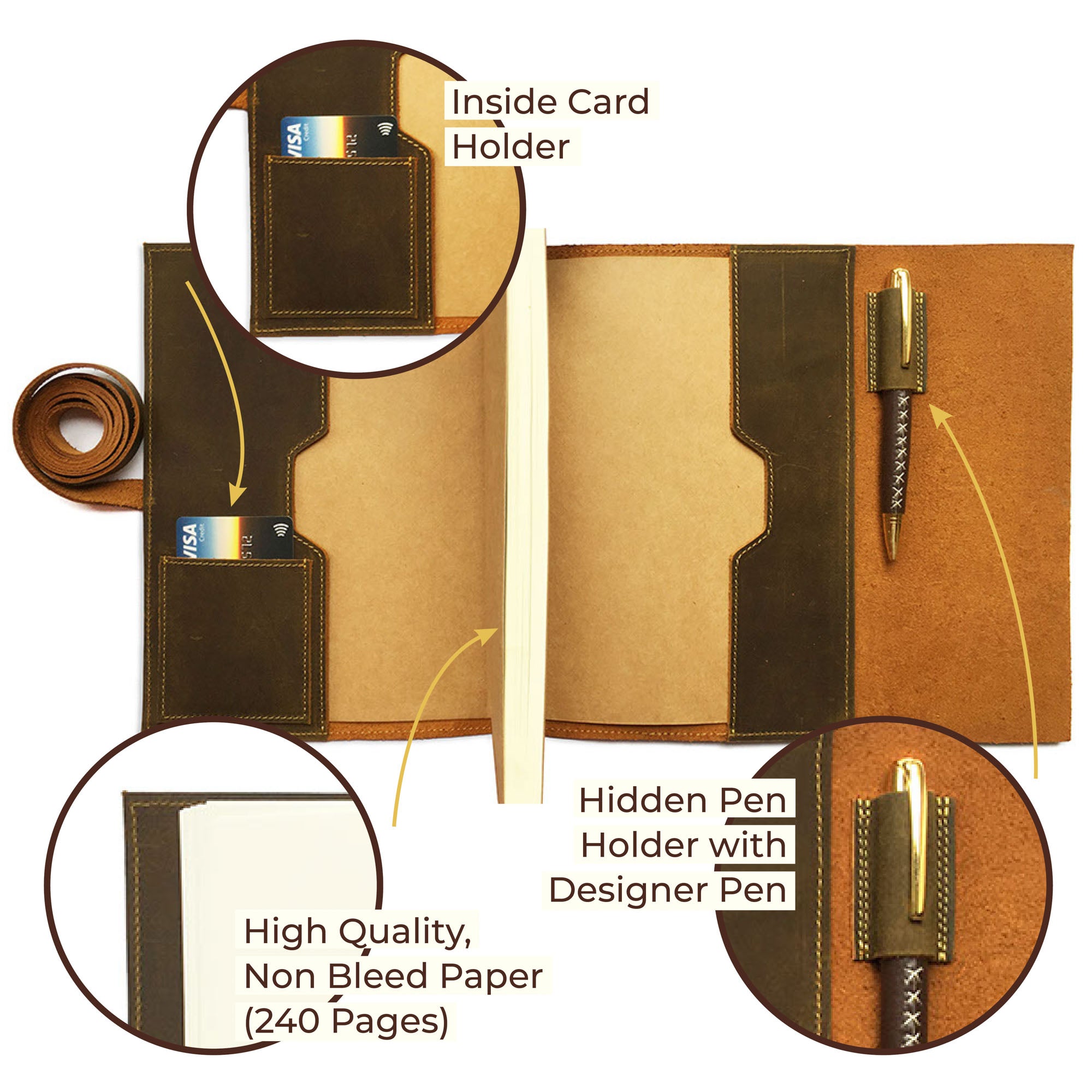 GENUINE LEATHER CRAFTSMANSHIP: Made from durable, full-grain buffalo leather with a hand-stitched finish and secure closure. The natural distressed look evolves over time, creating a journal that ages beautifully with every use