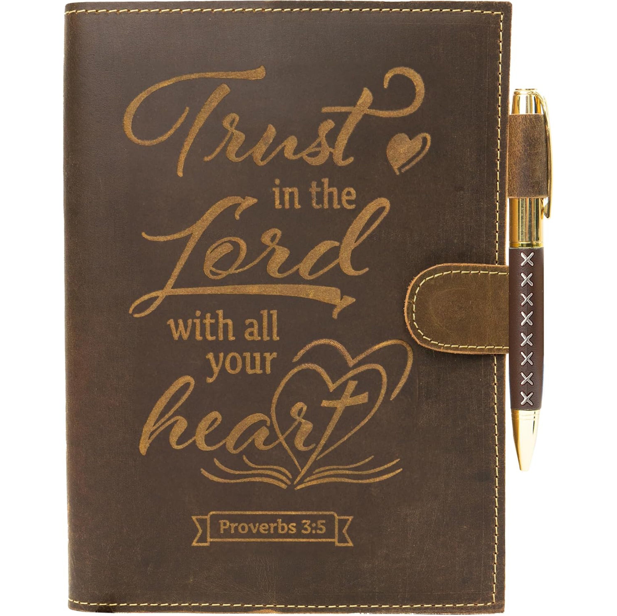 Religious Refillable 'Proverbs 3:5-6' Embossed Leather Journals with 2 Booklet Refills + Pen - Genuine Handcrafted Leather