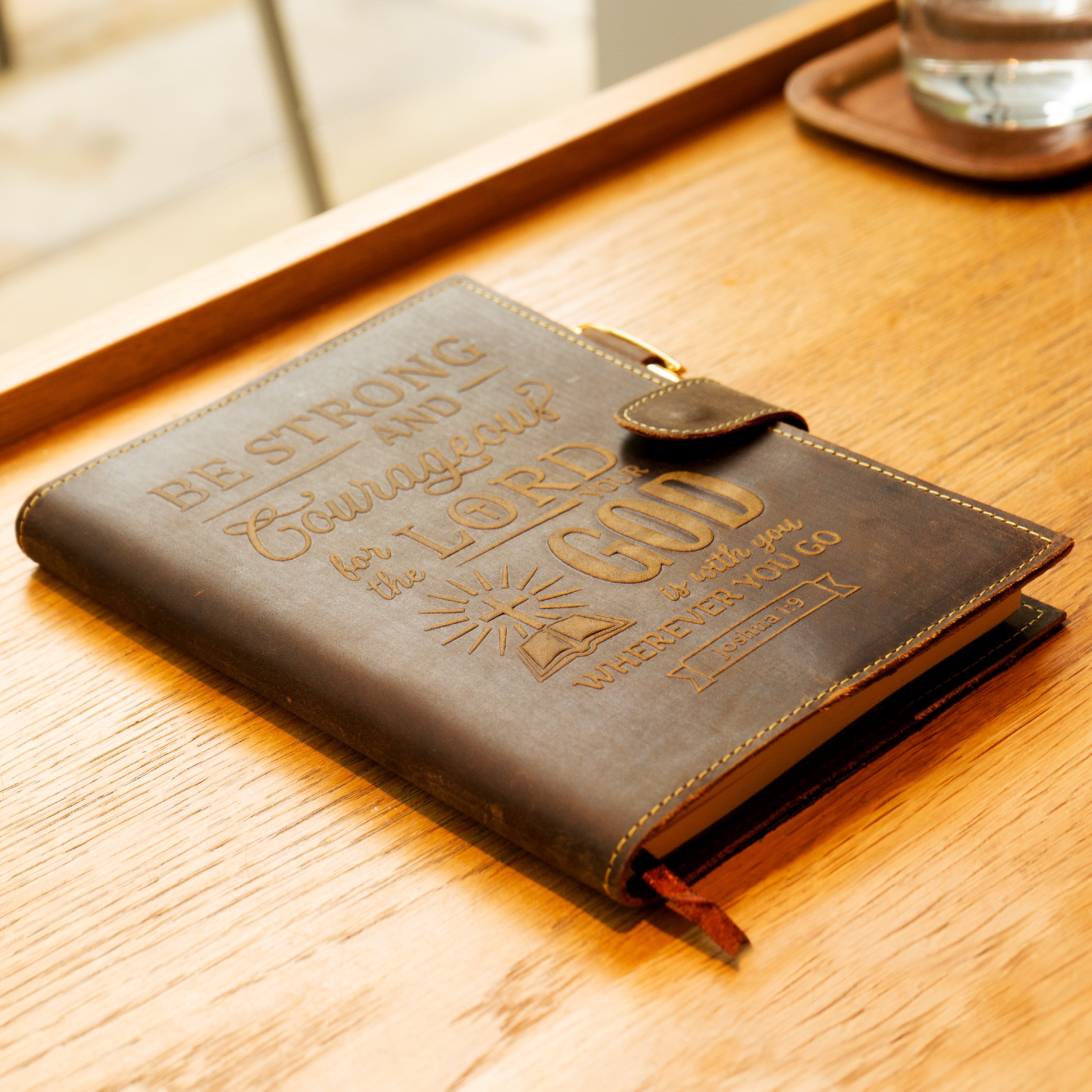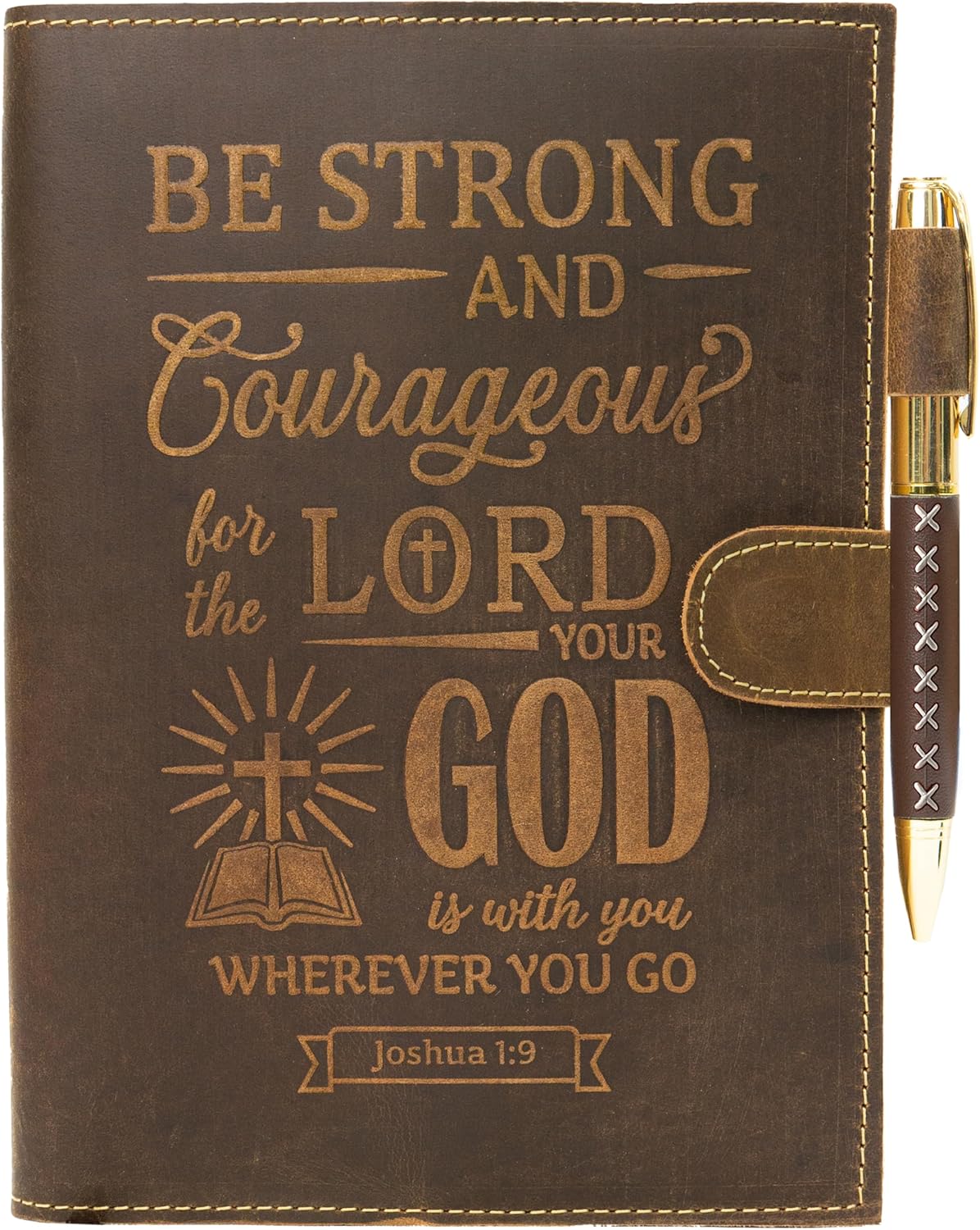 ✅ INSPIRATIONAL DESIGN: Featuring the empowering quote Josh. 1:9 quote ‘Be Strong & Courageous” and an intricately embossed design, this refillable leather journal inspires strength, faith, and daily reflection - ideal for personal devotionals, writing, or quiet moments