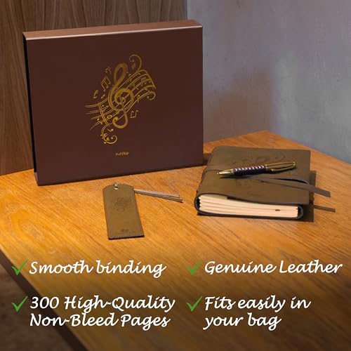 ✅ Handmade Leather Journal for Music Lovers – Crafted from genuine buffalo leather, this rustic A5 writing journal features an intricately embossed treble clef and music notes design on the front cover. A hidden pen loop keeps your included designer pen secure. Ideal for songwriters, musicians, or journaling enthusiasts.